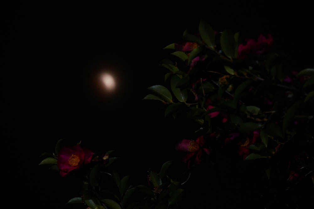 21:40、三日月くらいまで進みました。サザンカにピン合せ