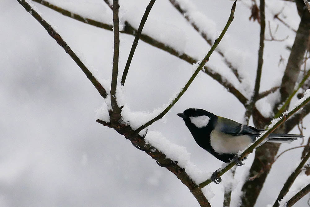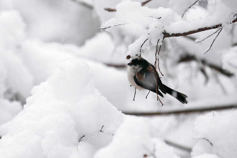 これだけの雪が積もれば小鳥達はエサ探しが非常に困難、餌場で小鳥達が行き来していれば、近くの小鳥達も食べられるエサがないか覗いてくれるのです。