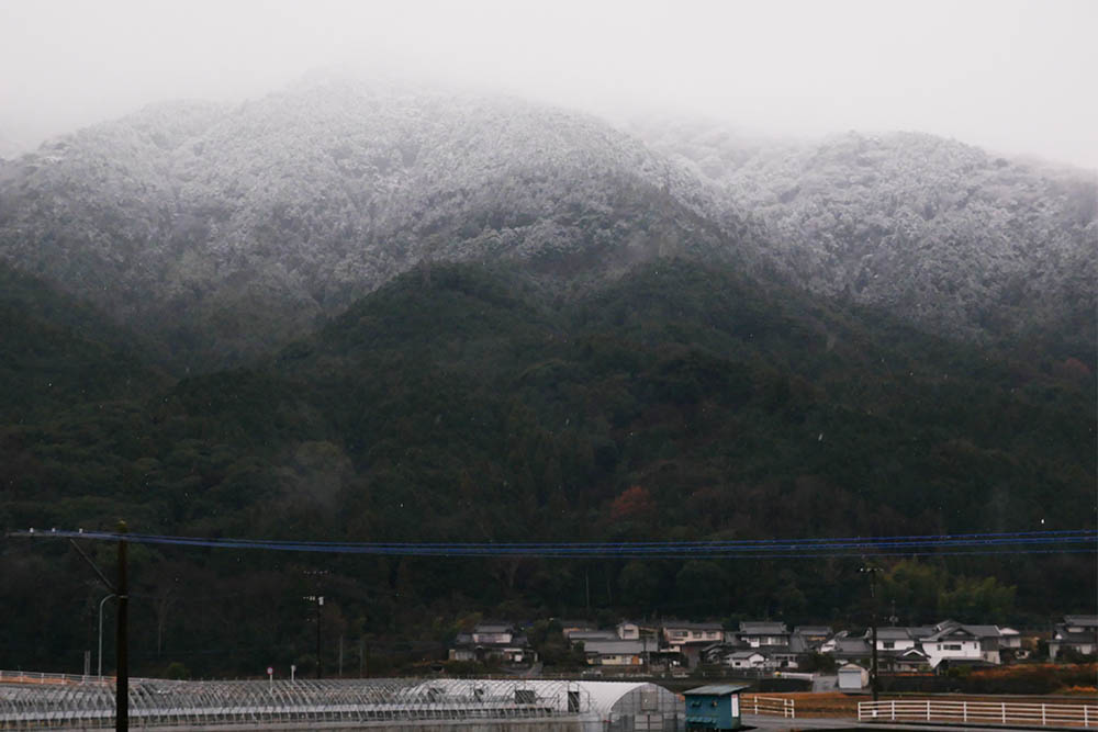 10時頃の気温を測ると4.6℃、米水津より2~3℃ほど気温が低い大分市内は2度前後?大分市内より更に2度前後低い福岡市は0℃前後だったかも?西高東低で雪が降るのは、筑紫山地や九州山地以西に沢山降って、東へ行くほど雪雲は薄くなります。
