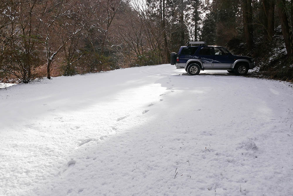 夜半から大分市内は霙の予報が出ていたので、山は雪との判断でした。早朝から県民の森、案の定5㎝くらい?の雪が積もって、まだまだ降り続いています。