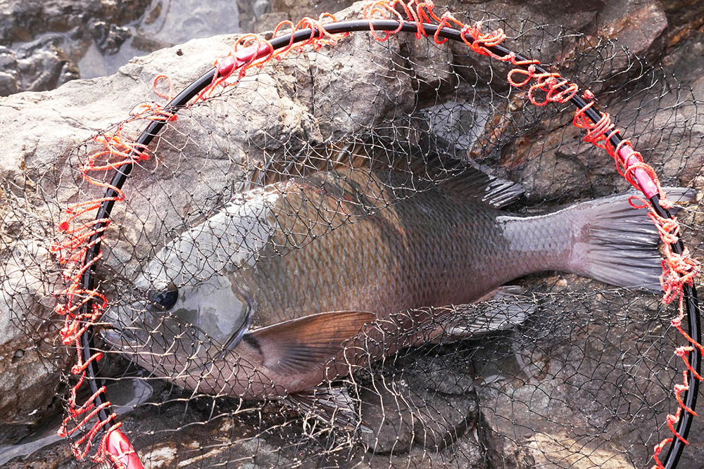 尾浦沖の消波ブロックのグレ釣りは、ウネリが大きくて1時間で終了。