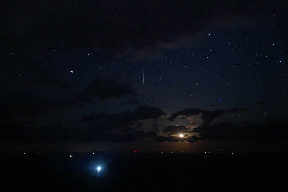 6時7分、明るくて長い流れ星が仙崎公園の上を通過、月と並んだ木星も