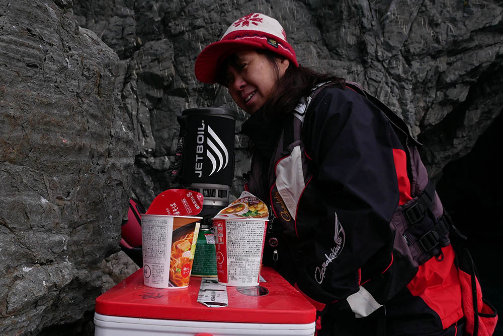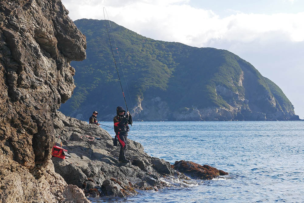 変った場所は千畳敷、昨日からのお客が納竿するので磯が空いたのです。しかしながら本命の満ち潮は14時まで来ませんでした。15時過ぎが納竿でしたが、隣の水取りバエ方向へは強い流れが来ないまま終了時間を迎えたのです。