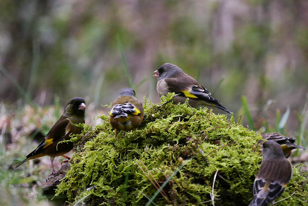 留鳥のカワラヒワ、撒いている粟や稗などに来ます