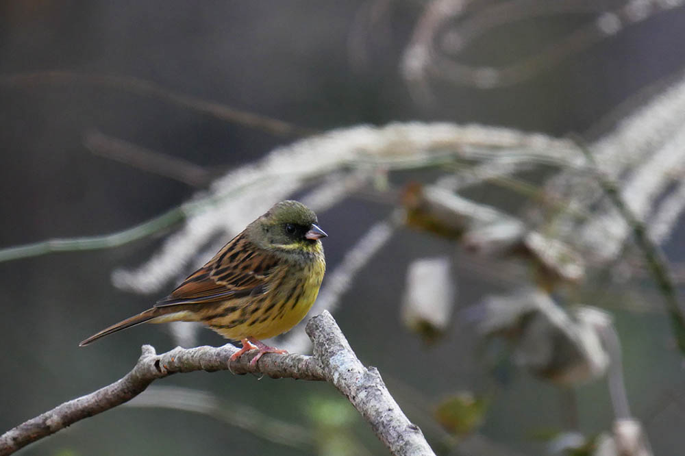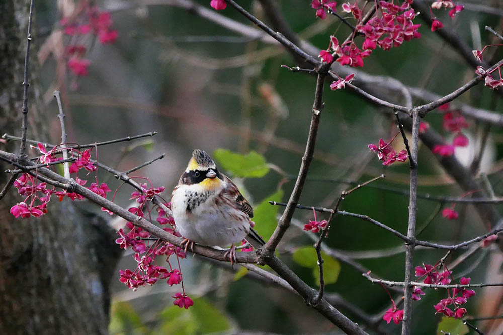 冬鳥のミヤマホオジロ♂、マユミの木に止まりました