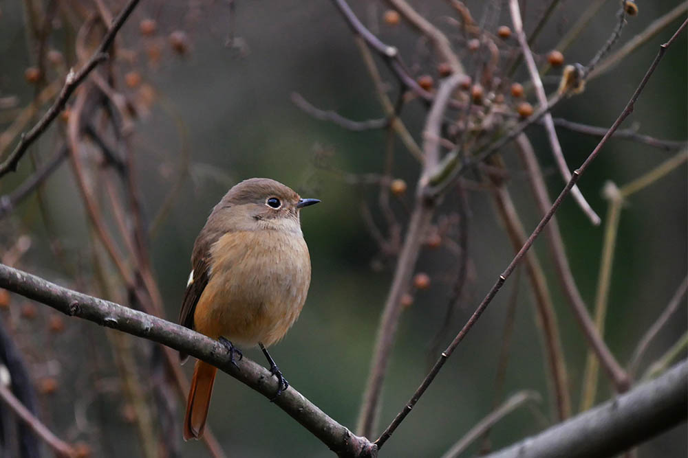 冬鳥のシロハラ、ハゼの実を丸のみします