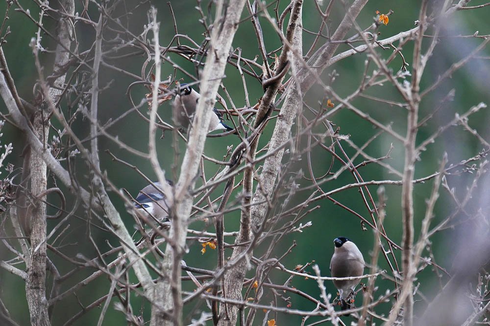 他にはマヒワの群れが10羽近く、アカウソの鳴き声も谷から聞こえています。