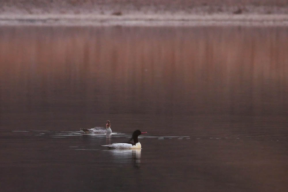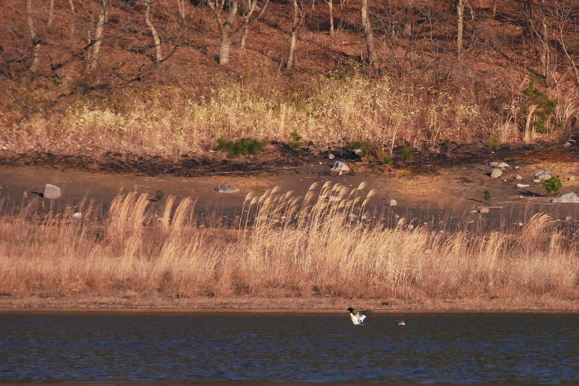 約300mほど先で寛いでいるコウライアイサの♂と♀