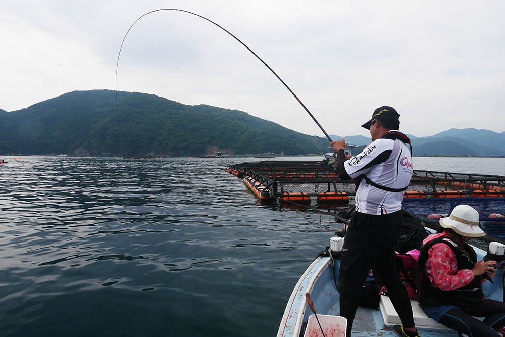 満ち潮が動き始めて速くなる潮に追加のマダイを断念、湾中央のイケスへ移動。