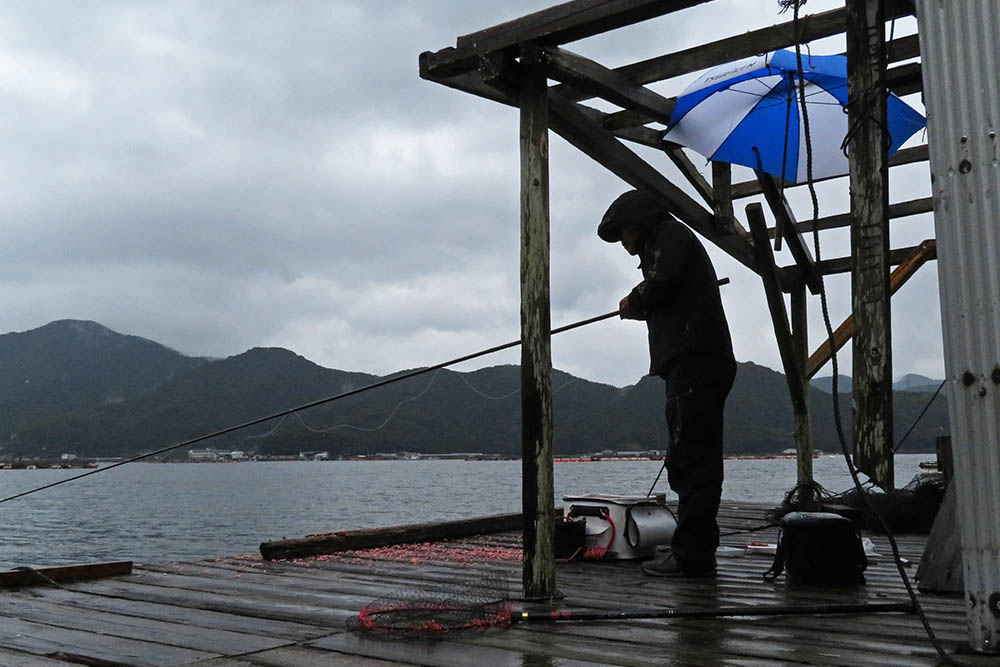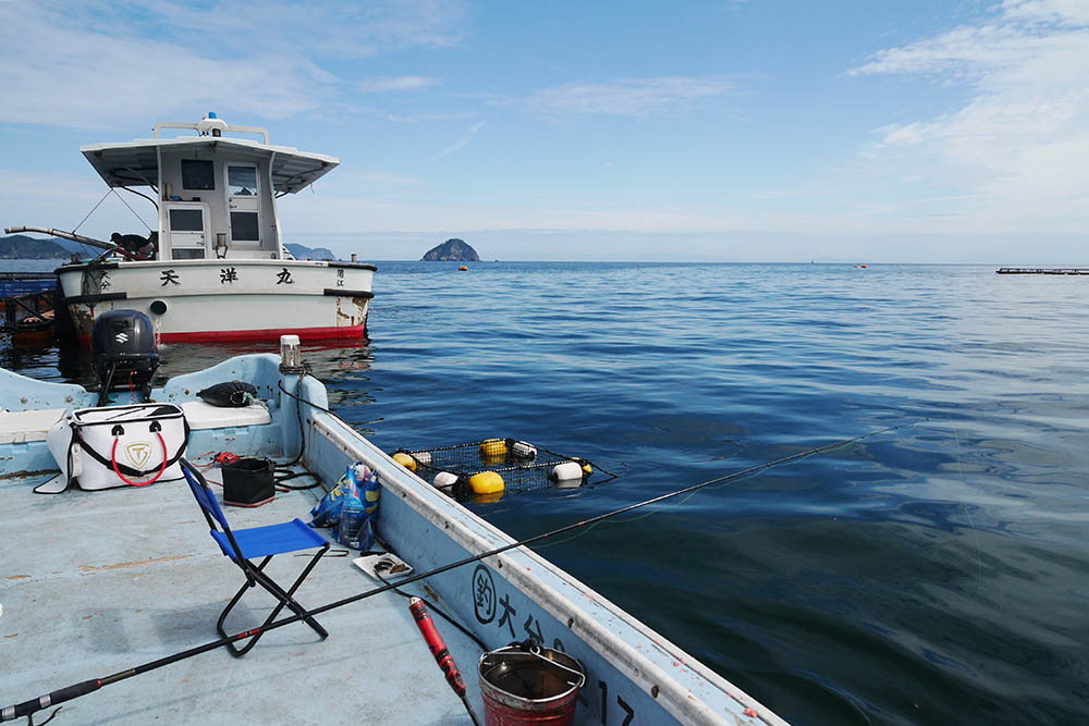 大潮で11時過ぎが干潮なので、潮止まり前の10時過ぎから沖のイケスへ移動です。