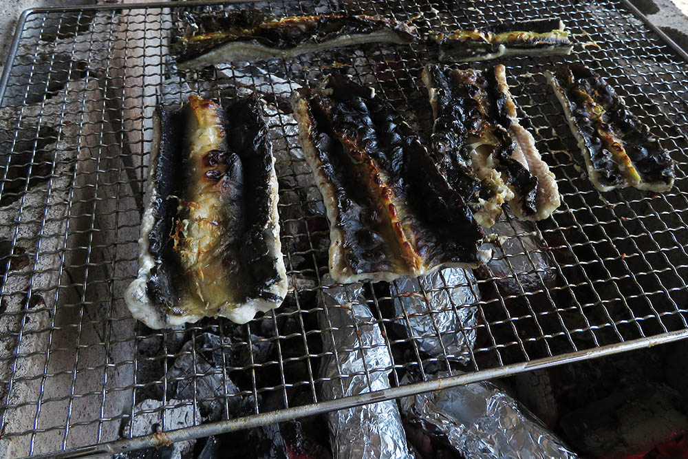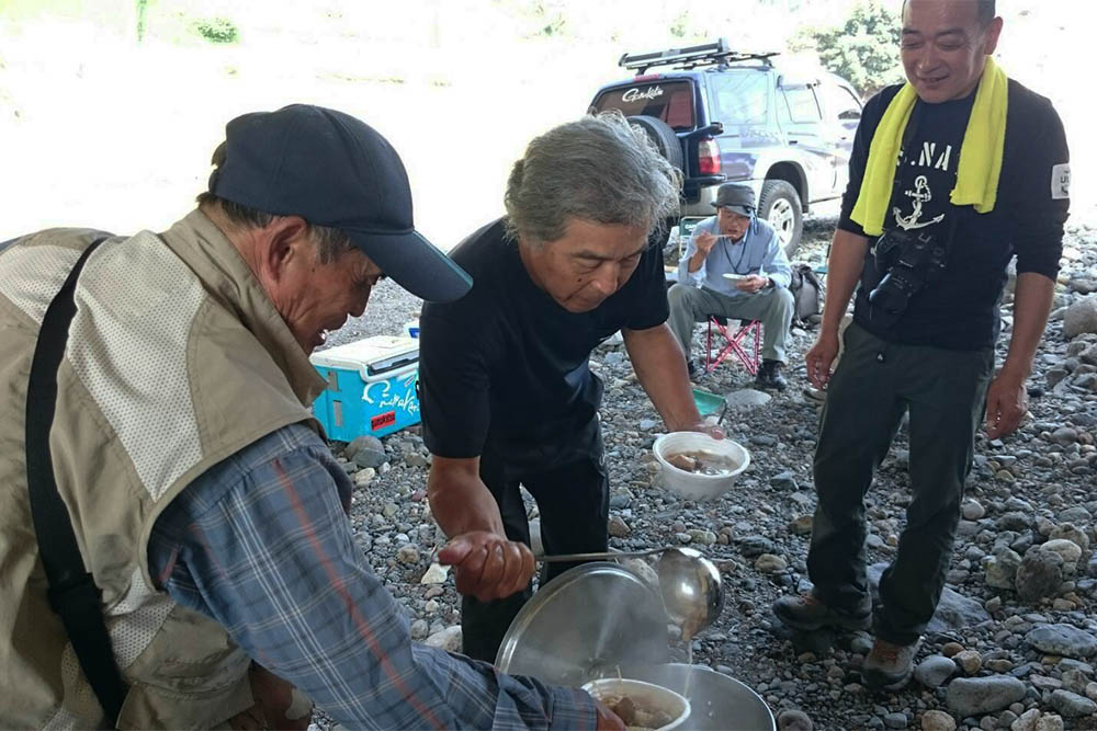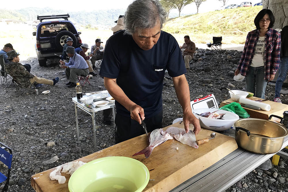 久保平君からはアユを50匹以上とカニ10匹。ウナギは木村君から3匹分。七瀬川のカニは幼馴染が30杯以上用意してくれました。猪肉はいつもの憲ちゃんから10㎏近く頂き、6~7㎏の肉で40リッターほどの猪鍋を仕込んできました。