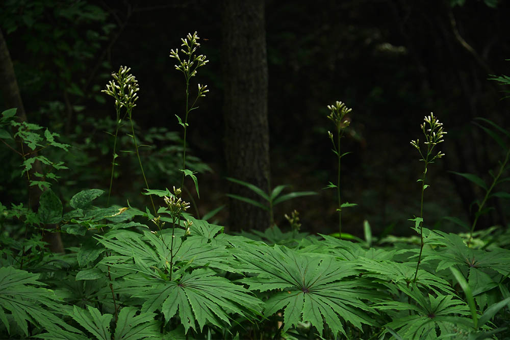 ジュウイチの鳴き声もしません。ヤブレガサの花があちらこちらで咲いています。