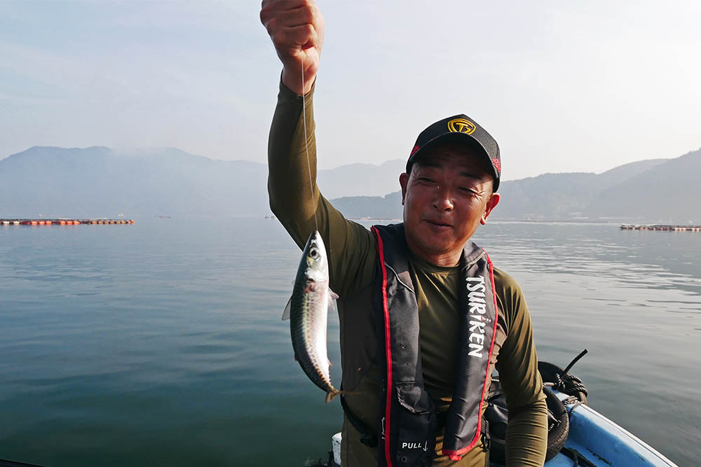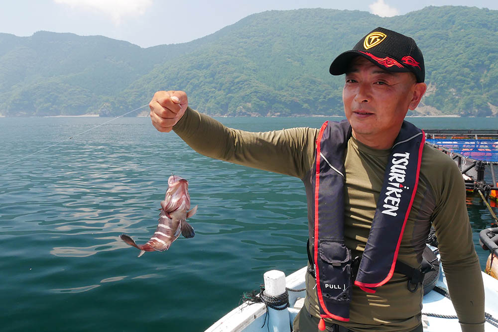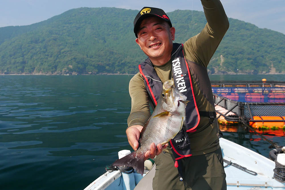 湾内のイケスは23~25㎝級のサバゴの群れ、よってマダイ狙いは早々に諦めました。