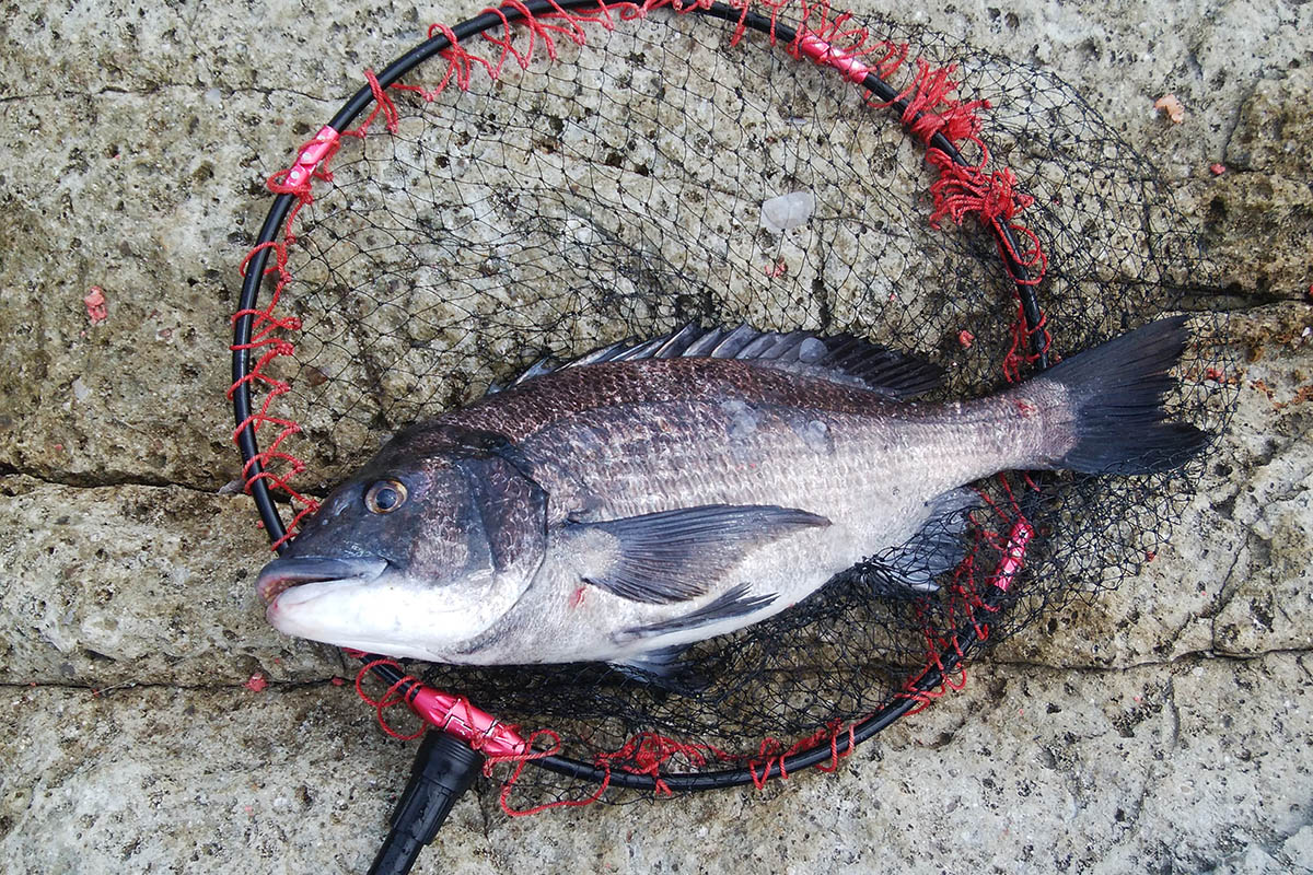 場所交代後、最初の20分くらいは潮筋が確認出来なかったのですが、左の浅い方から右に流れる潮が40m位沖で部分的に波立つ場所が発生するようになり、追い風に乗せて大遠投。キロ級のグレ2枚と30㎝級のグレを仕留める事が出来たのです。