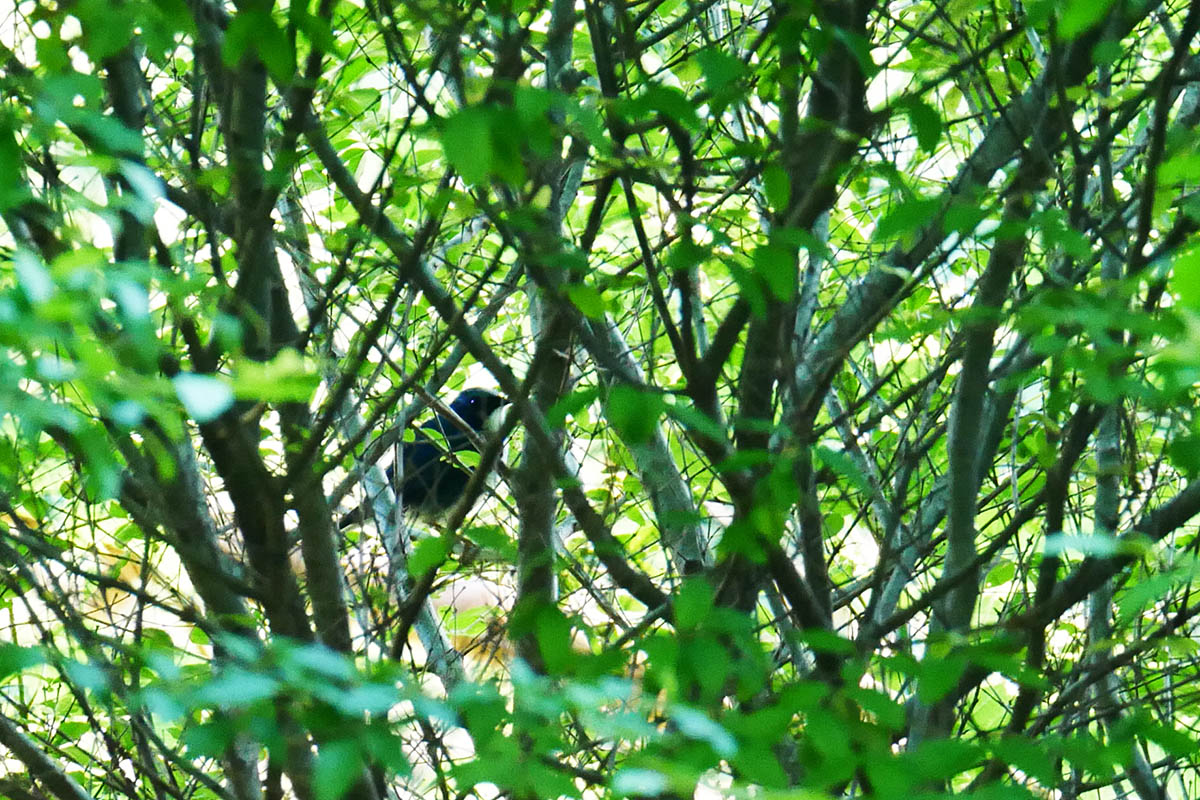 コルリは3日前の調査の時に、らしき鳴き声を小耳に挟みましたが、時期的に居ないと思っていたので半信半疑でした。今朝はかなり鳴いてくれたので粘っていると、ブッシュの間で動く鳥を発見、とにかくシャッターを切るとなんとか5枚ほど撮れていました。