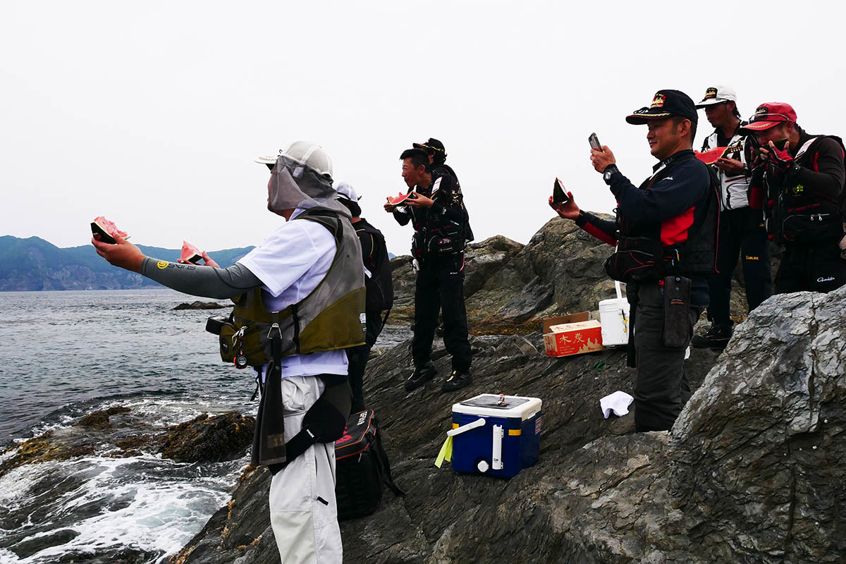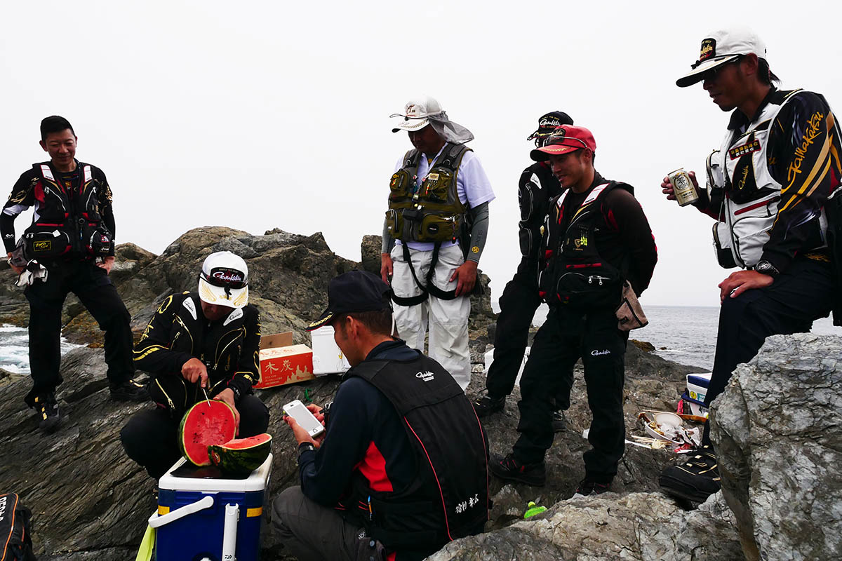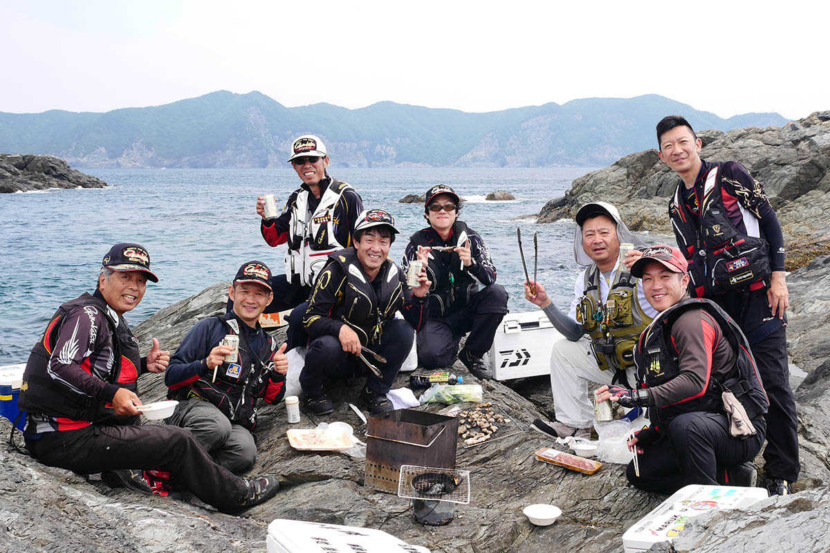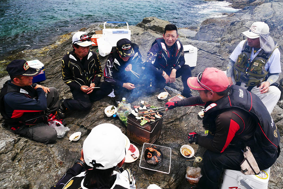お昼のバーベキューまで、交替で竿を出して誰一人グレが釣れません。