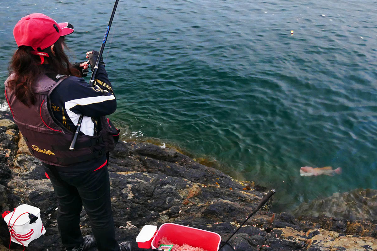 上がった磯は小貝バエ。先ずは二人の釣りをゆっくりと見学、上手くなっていますね。