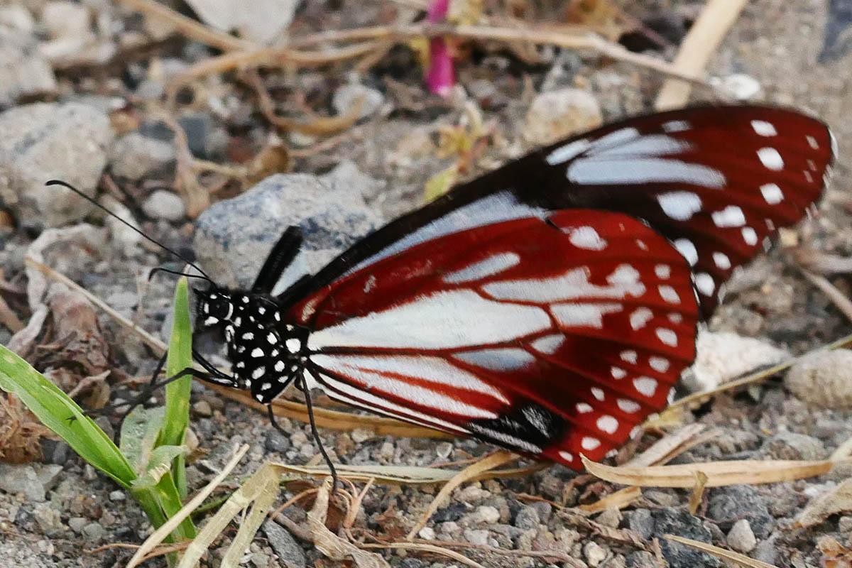 右の翅と胴体を喰われたアサギマダラ 犯人はカラスかイソヒヨドリ