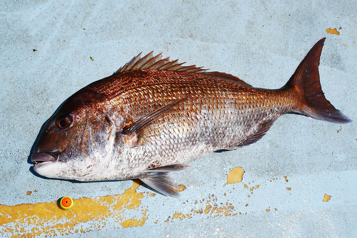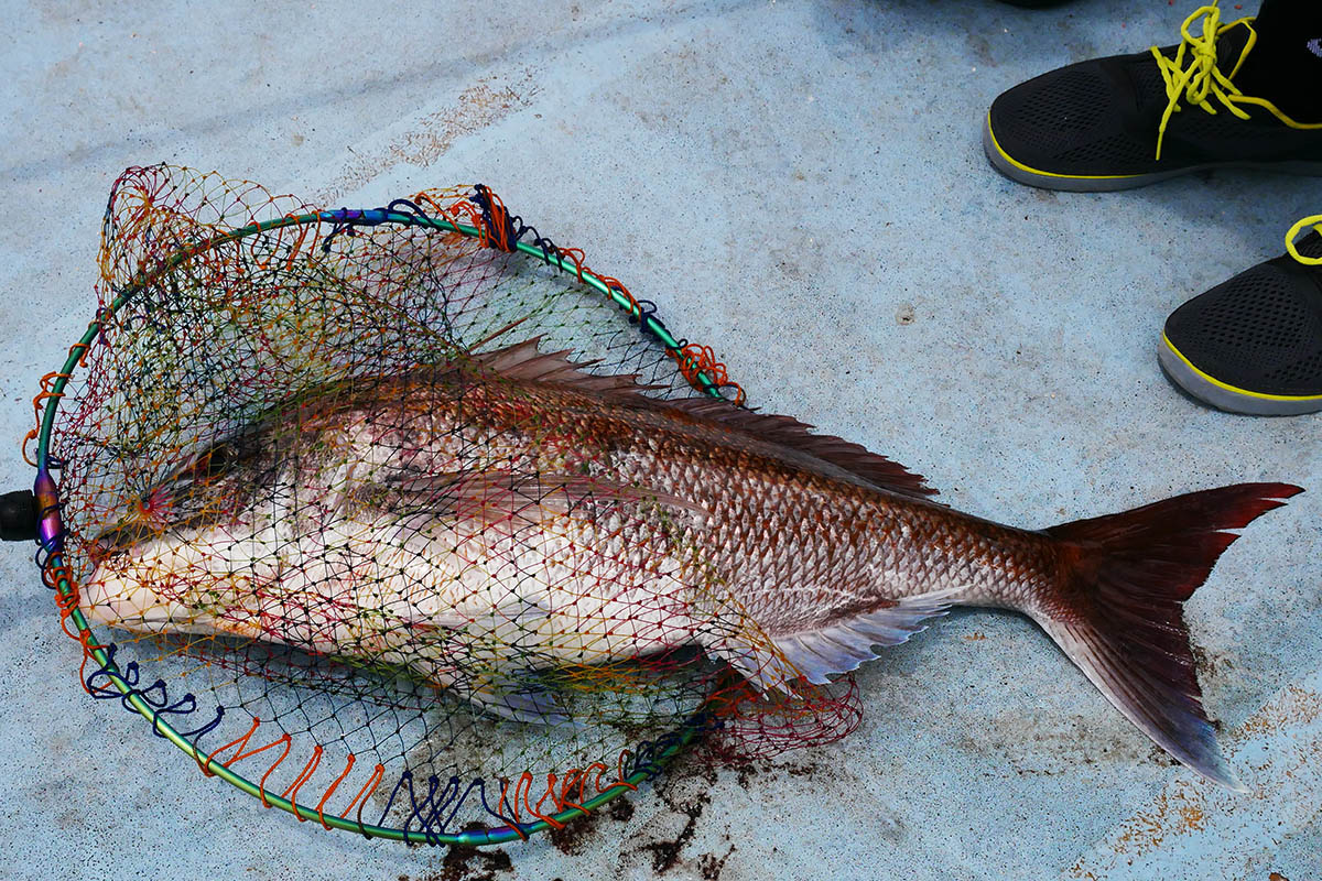 45㎝のタモ枠が小さく見えます。5㎏クラスのマダイは2匹ゲット