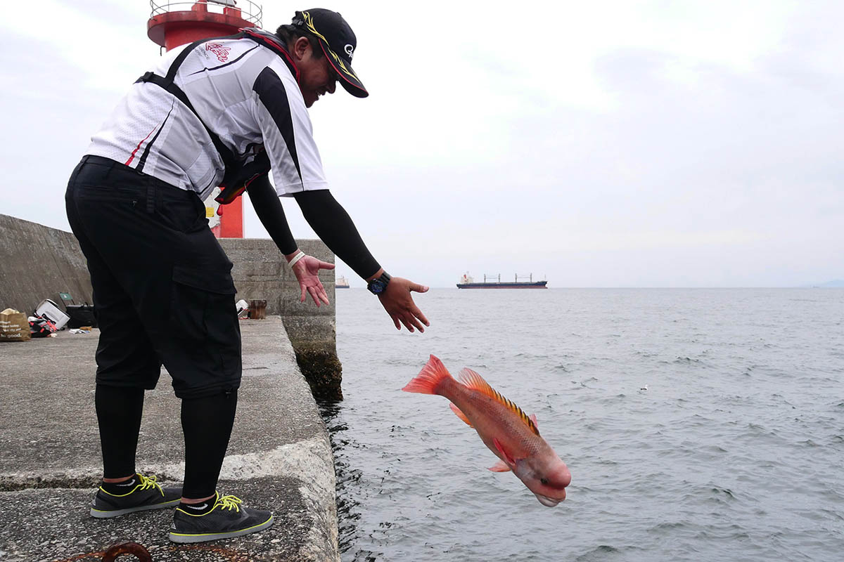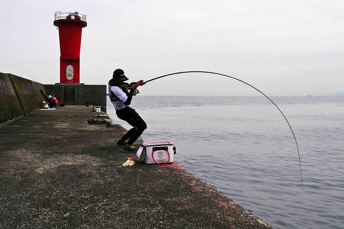 兪さんは、その後も小型カンダイを3匹仕留め、合計5匹のカンダイに巡り合えたのです。やはり上手でした。奥様のマキエ係りのサポートが奏功したのかもしれませんね。