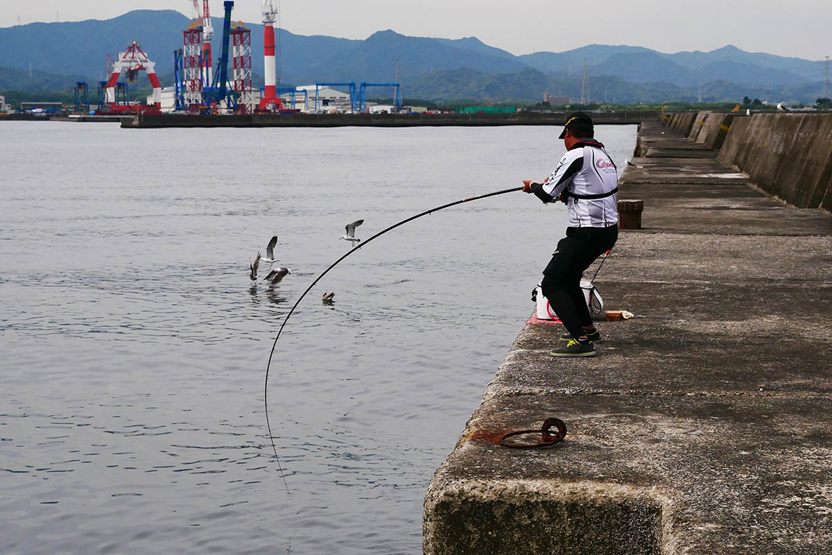 最初の竿曲げは原田氏