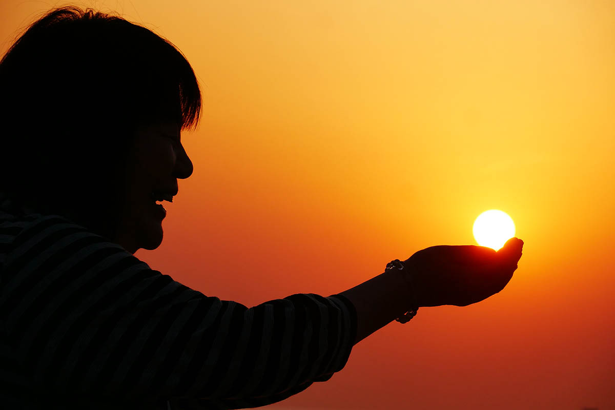 夕日をバックに