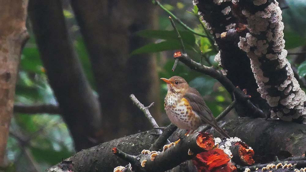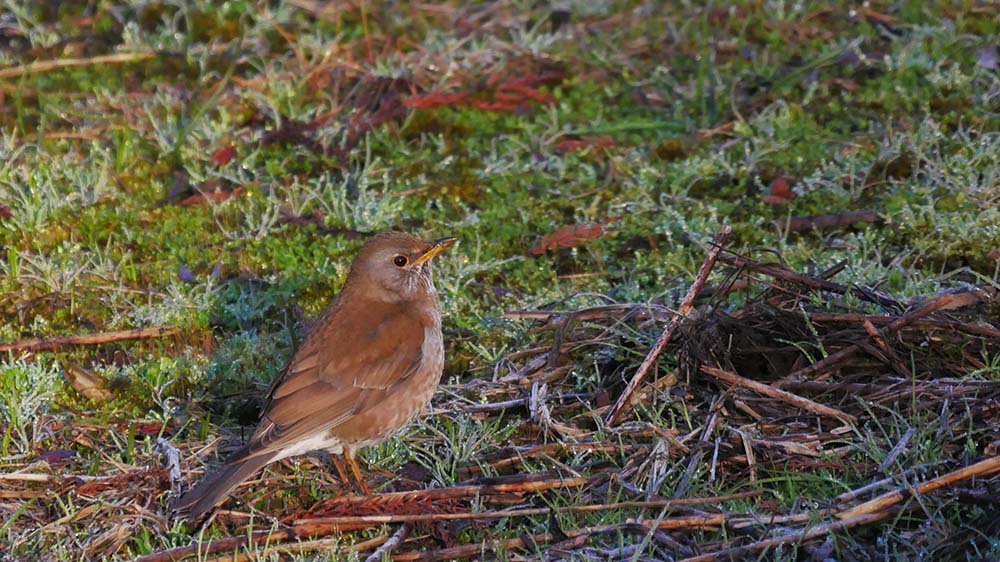 先ずは冬鳥のルリビタキが来てくれて、続いて現れたのはクロツグミの♀