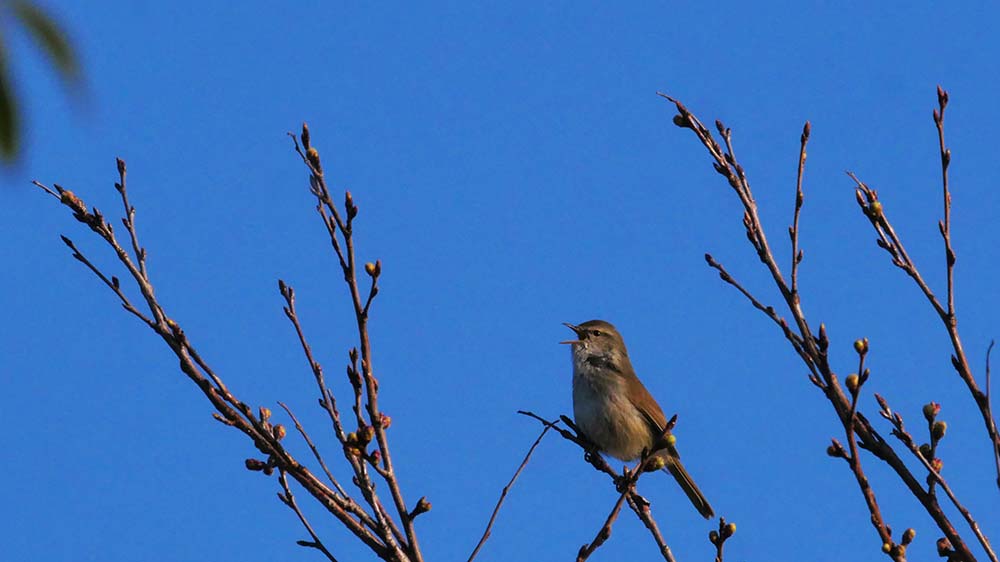 8日に写した♂、昨年同様この近辺で囀っています