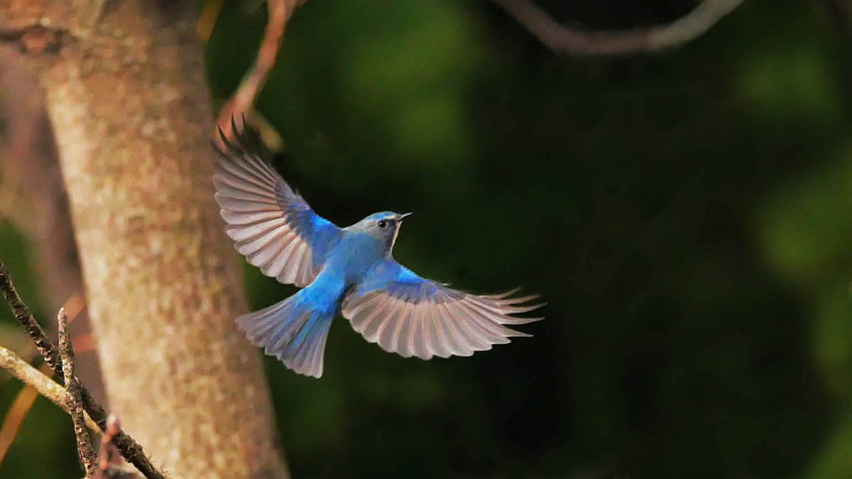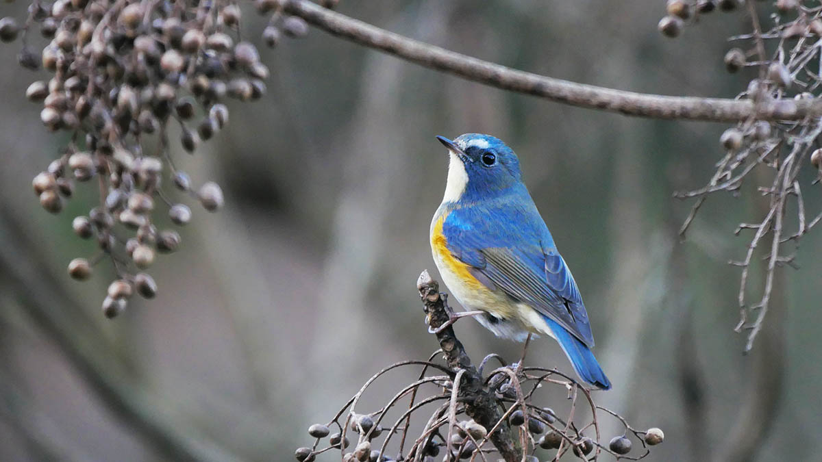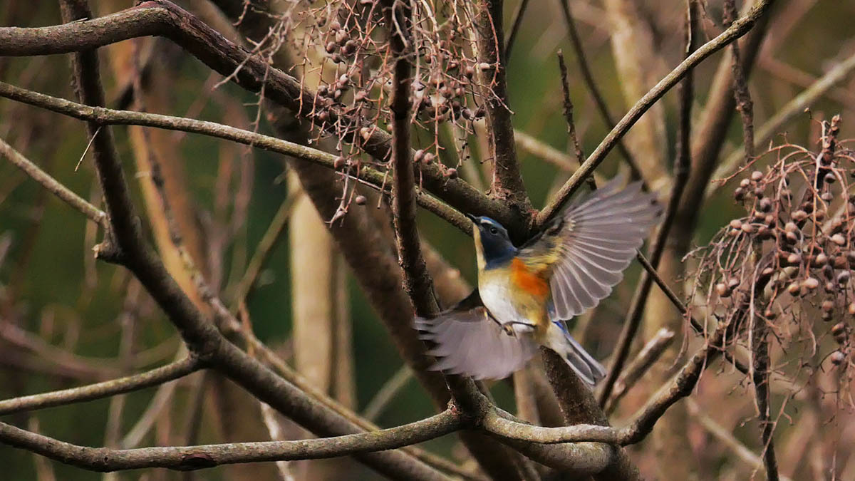 薄曇りだったので、ルリビタキの飛翔に挑戦。