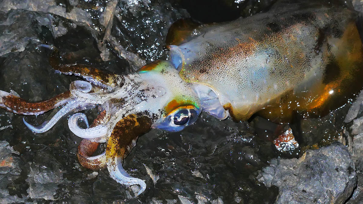 夜釣りでモイカを狙っていたお客様、“ミチグイ”で良型を8杯釣っていました。