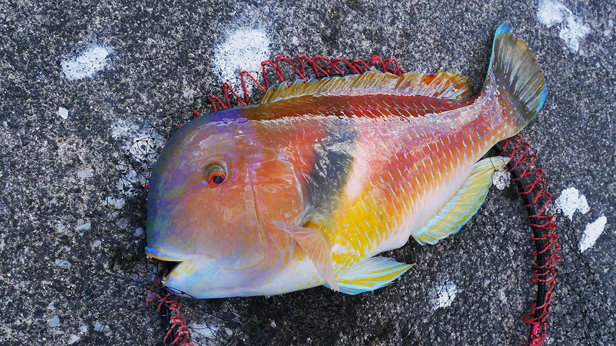 私のモイカ釣りは泳がせ釣り。エサは生きたアジゴで、掛けバリを取り付けて狙います。4時頃から釣り始め、最初の1杯は6時過ぎ、次が7時30分頃。更に2回程アタリが出ましたが取り込めませんでした。青物のアタリも1回ありましたがハリ掛かりなし。