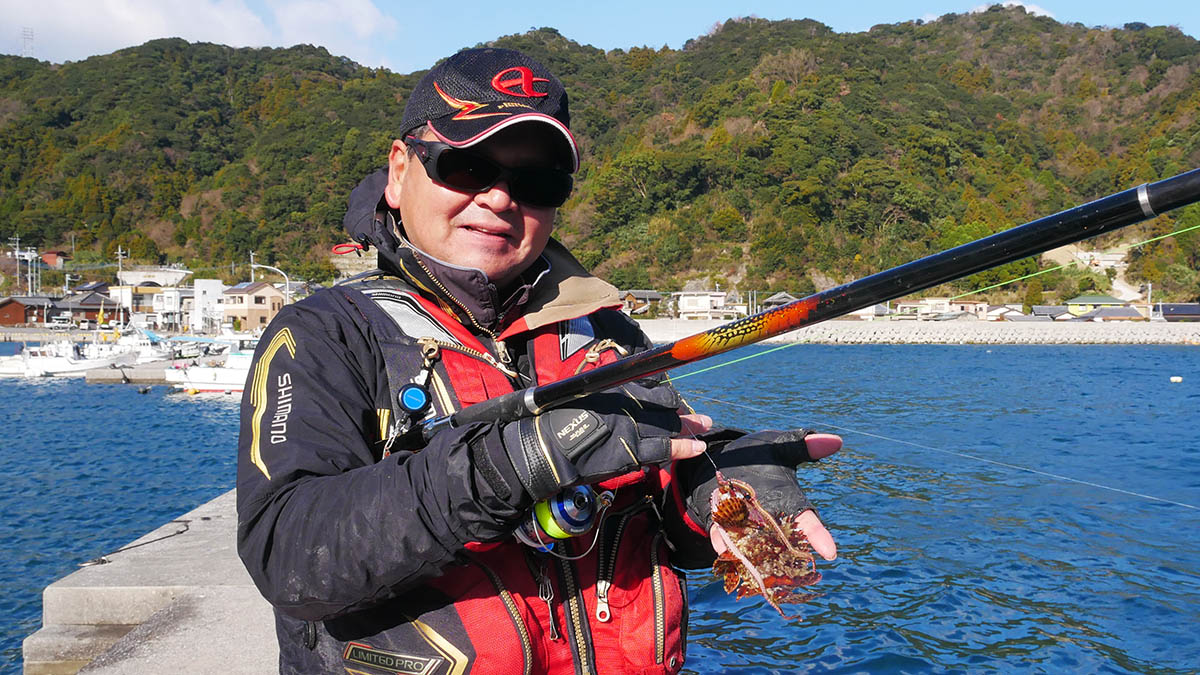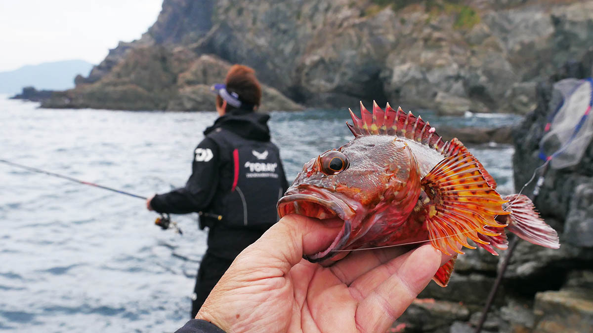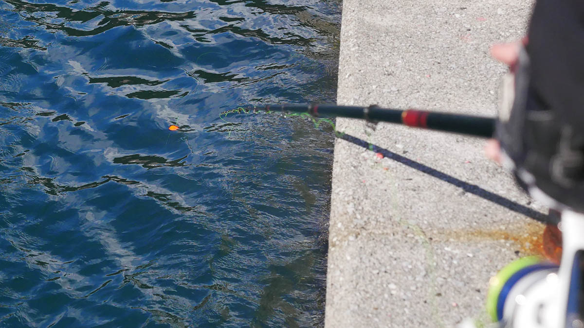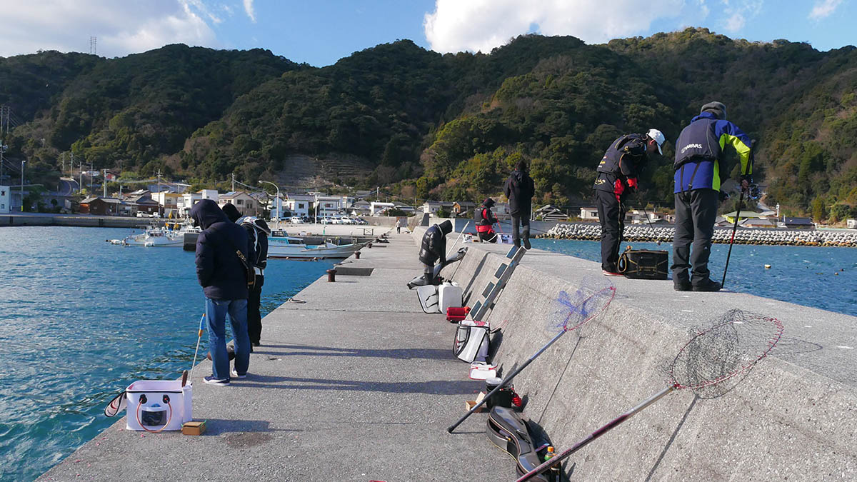 強風下でも竿を出せるカンダイ釣り場は限られてきます。ポイントに選んだ波止は、津久見市の日見港でした。水深は5m前後ですが大型のカンダイは複数回確認済み。