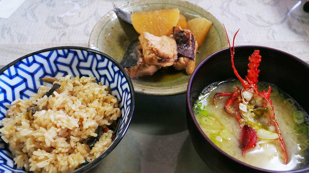 アワビ飯・ブリ大根・イセエビの味噌汁