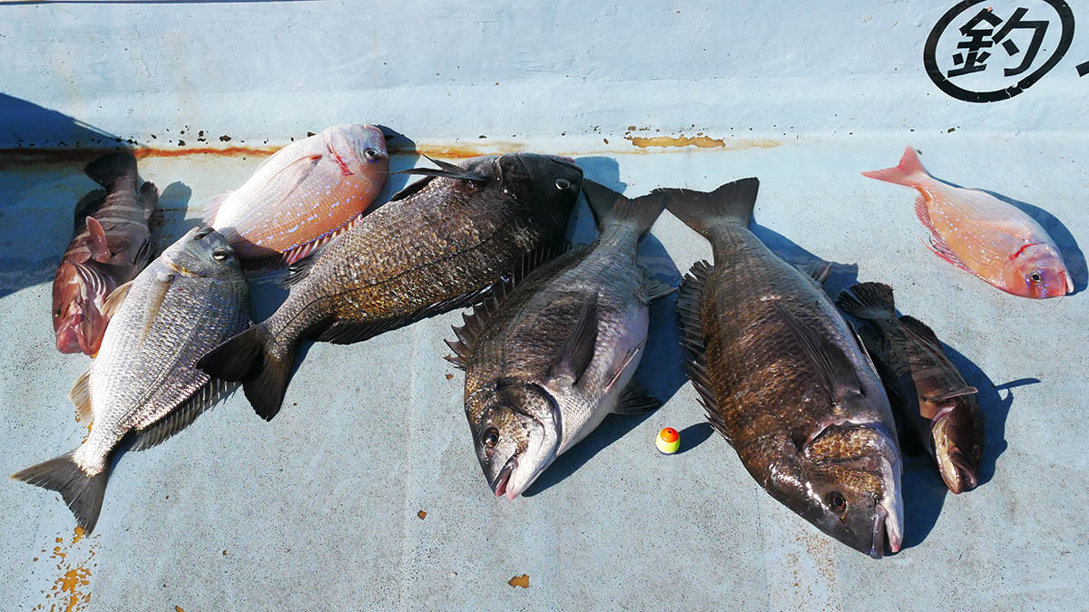 蒲江の西野浦湾内のカセ釣り。マダイのタナも深くなっています
