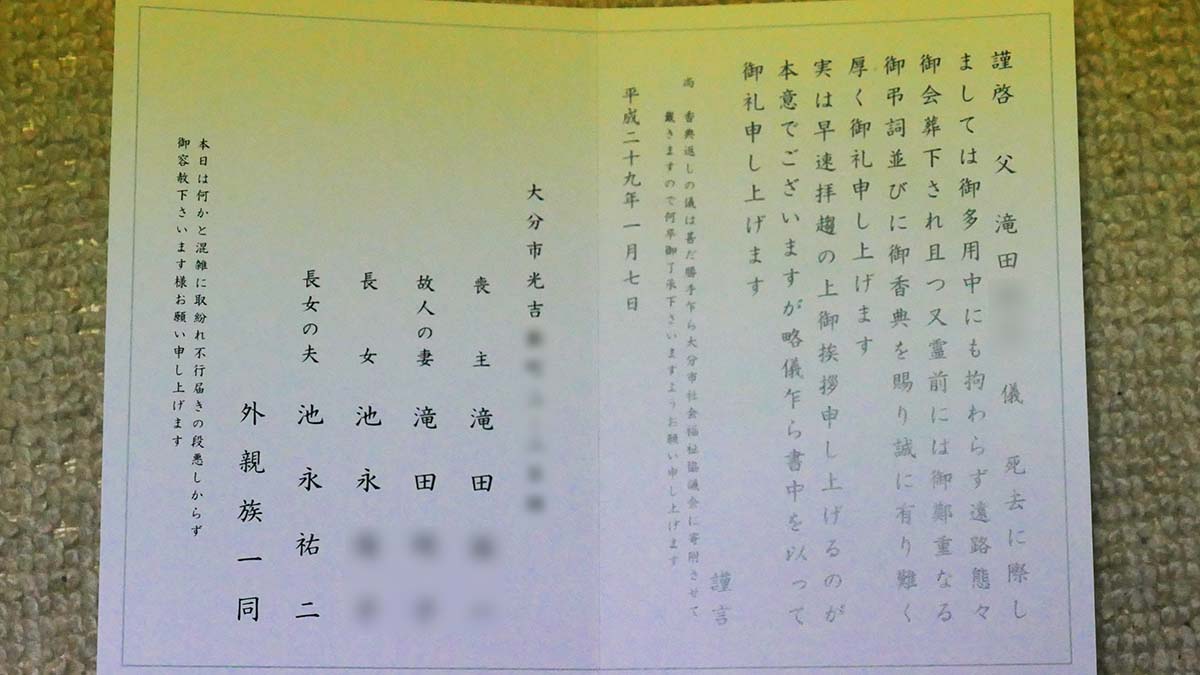 皆様方からのお悔やみの数々、心からお礼申し上げます。