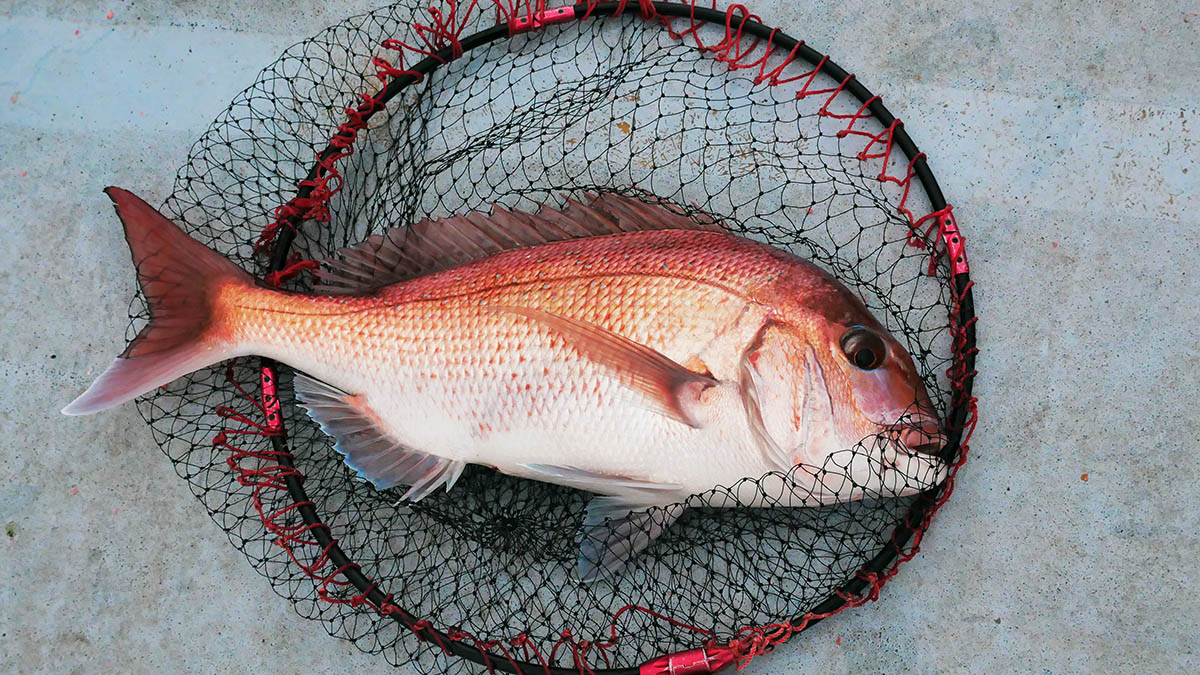3投目のアタリは底から50㎝くらいの水深で、こちらは55㎝くらいのマダイ。