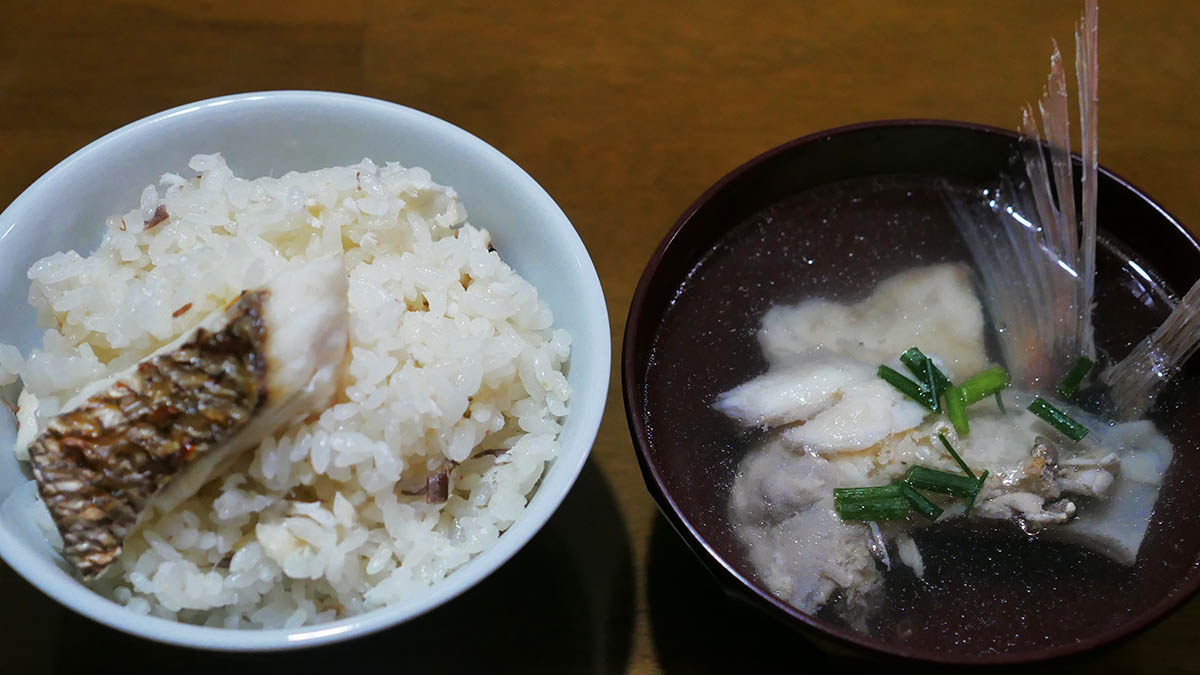 我乍らビックリするくらい、淡く甘く香りのよい鯛めしが炊けた。