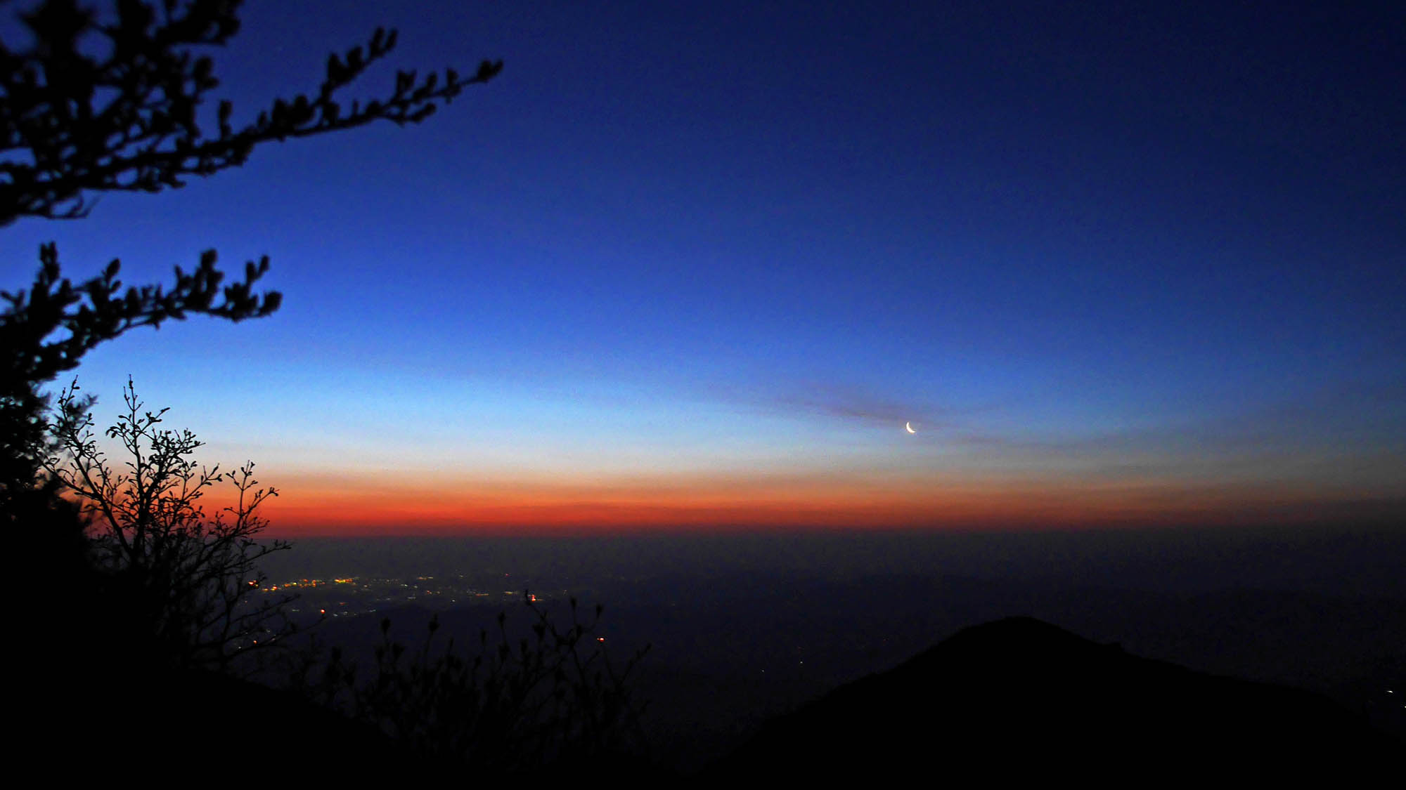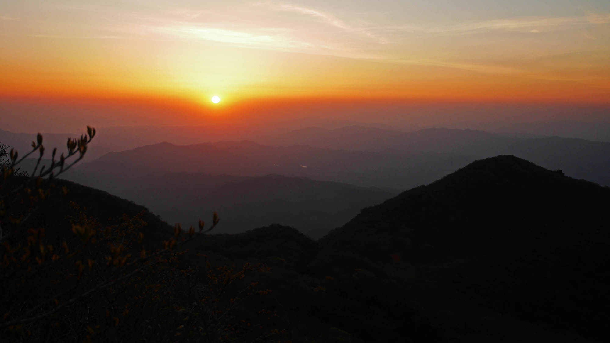 未だ暗い4時過ぎ、キャップライトの灯りで高塚山の頂上へ。星は少なくなって東の空には細い三日月が名残惜しそうに残っており、濃紺の空が次第にオレンジへと変化していきます。黒岳の頂上に二人だけ。山々にお日様が差し込むと、あちらこちらからコマドリが囀り、ミソサザイやヒガラも合唱・・・なんとも贅沢な朝を迎えたのです。