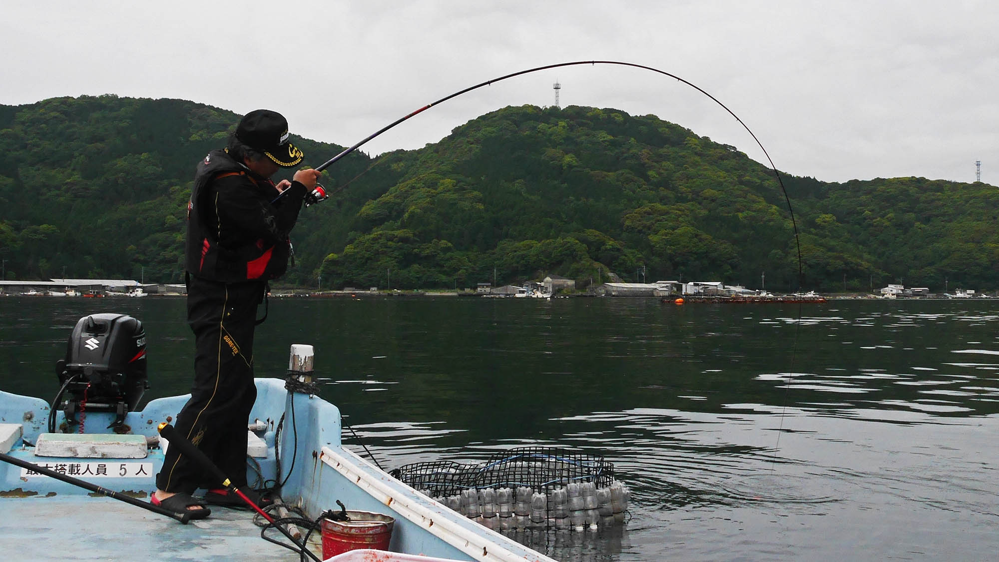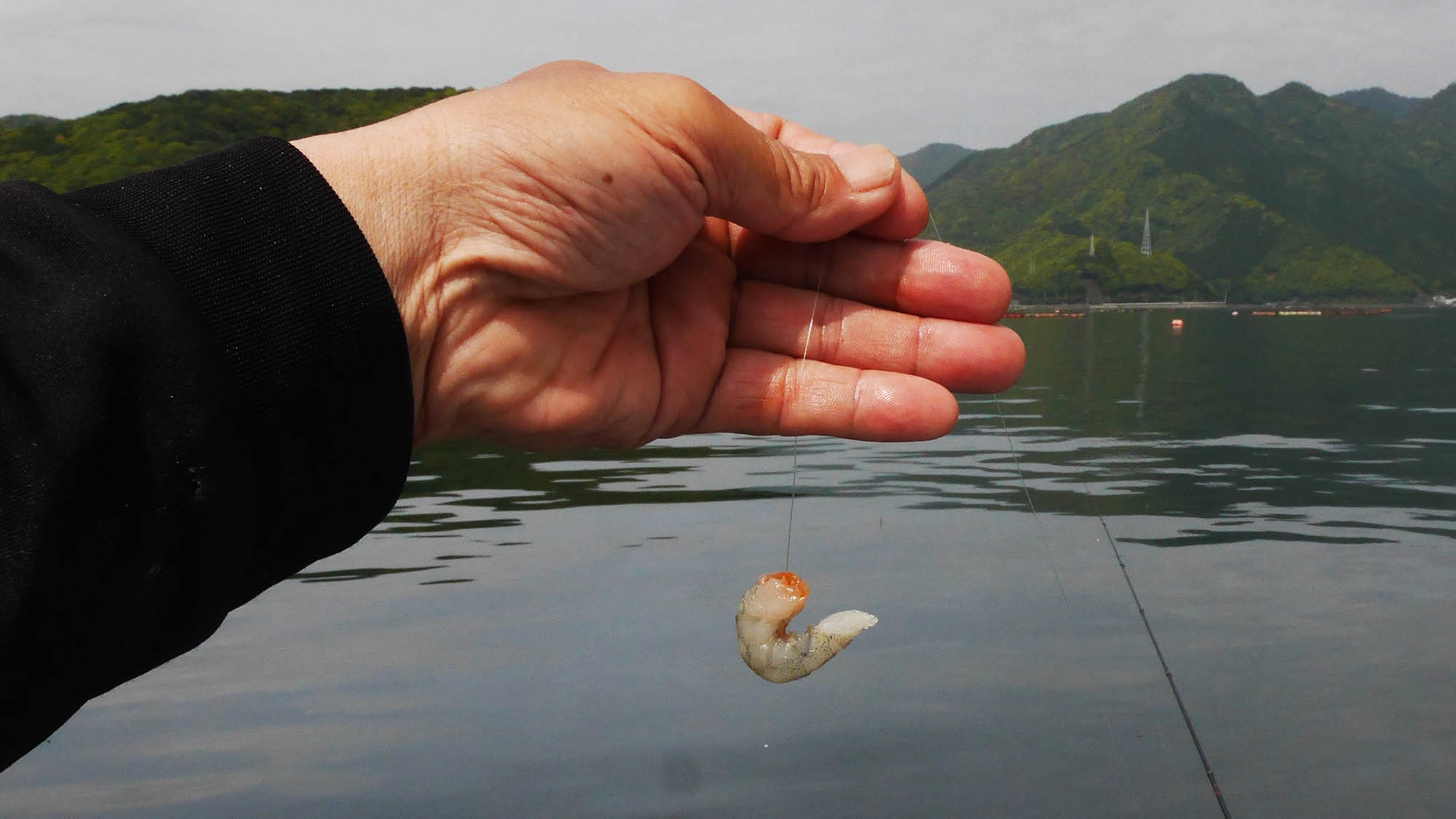 8時出港~15時納竿の工程で、湾奥のイケスへ船を止めます。いつもならマキエ杓でマキエを打ちながら準備をしますが、サバゴを警戒してダンゴを作って数個ほど投入です。これで表層のマキエが少ない分、サバゴには気付かれないでしょう。
