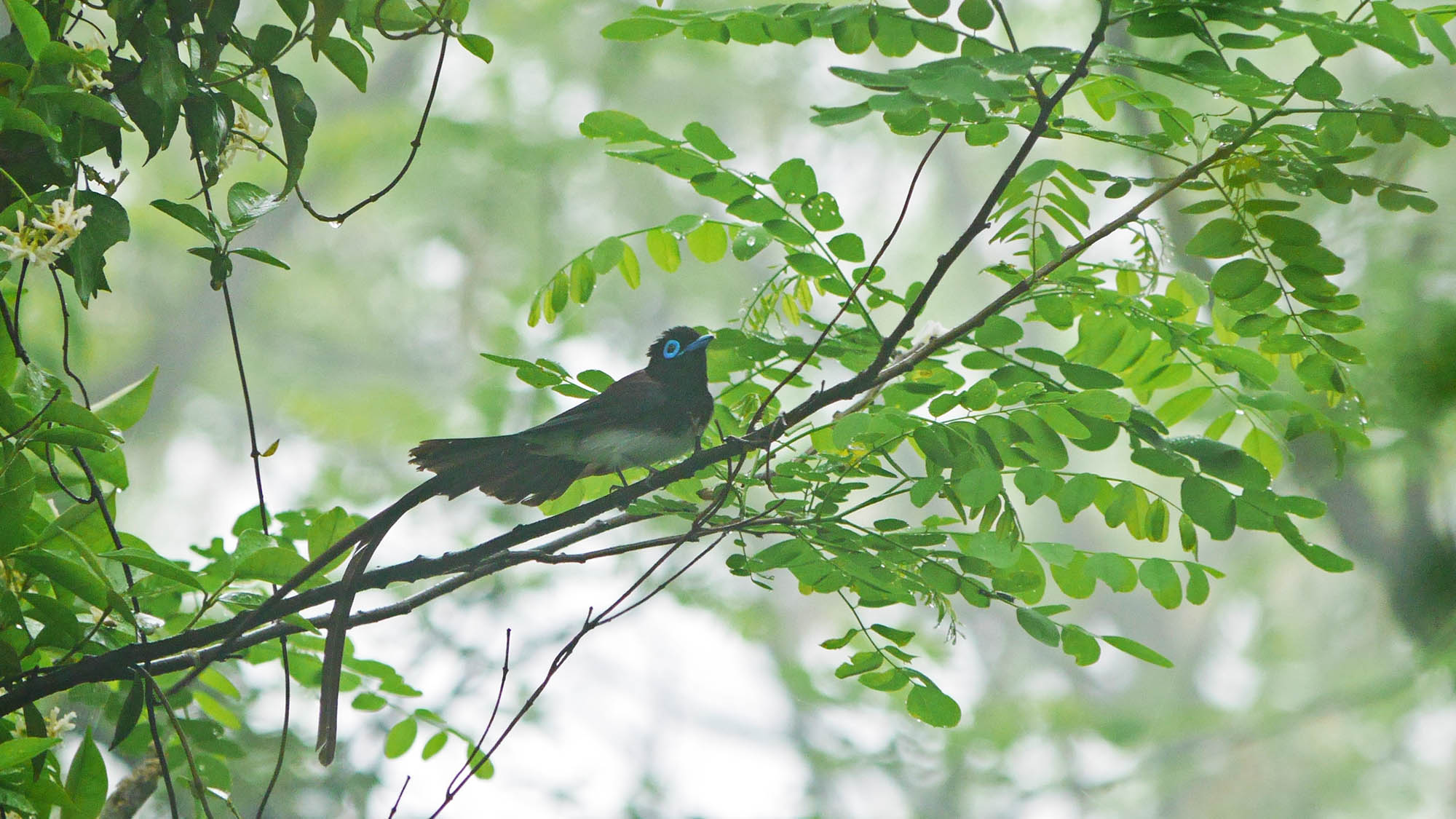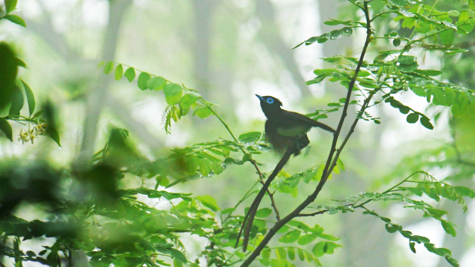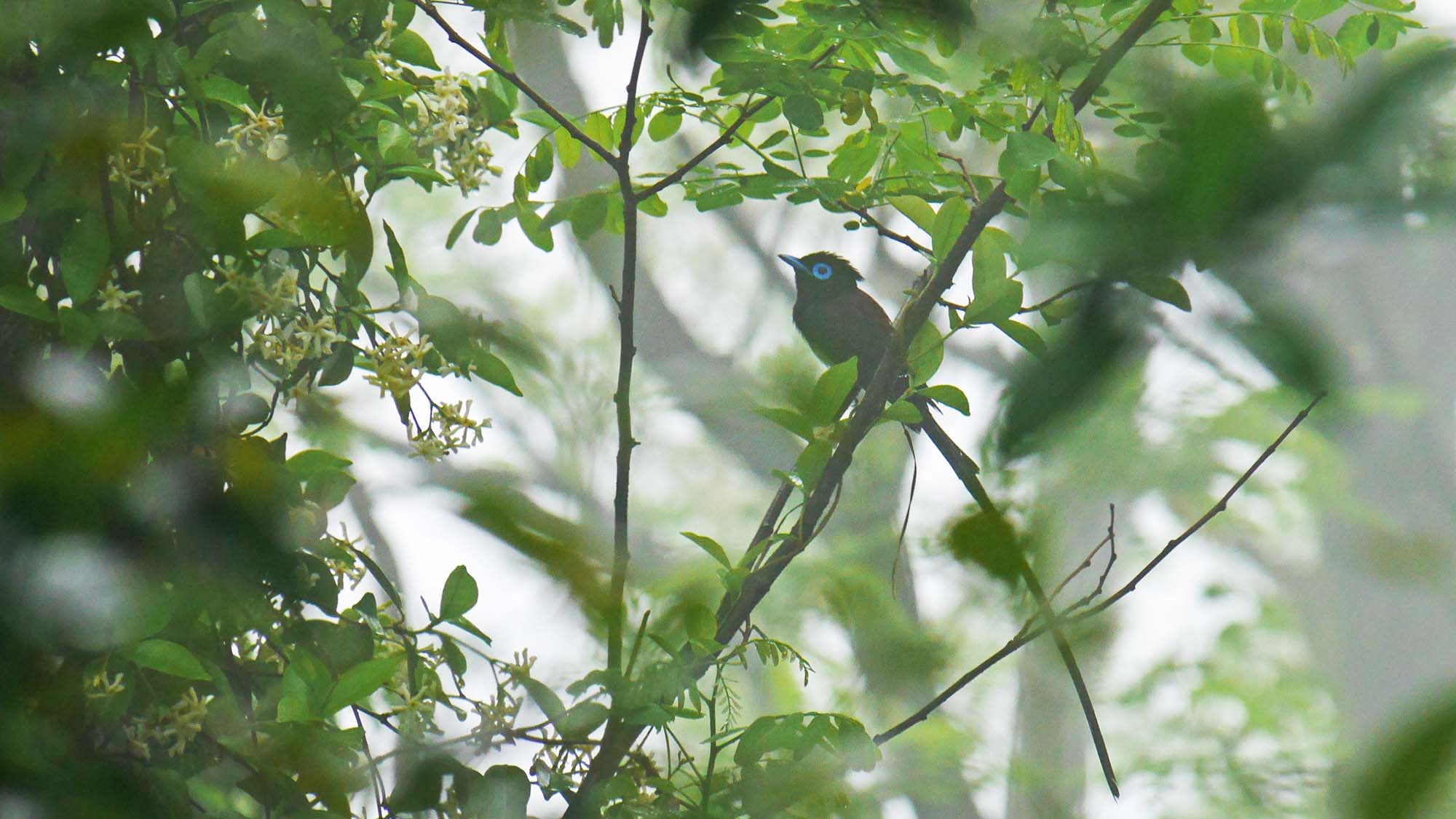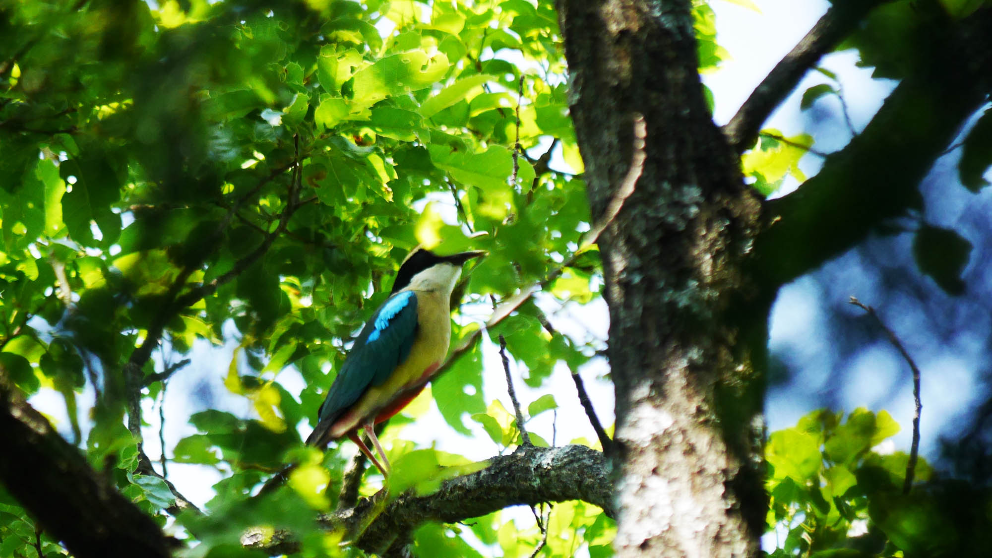 ヤイロチョウは、いつも葉隠れの先などで鳴きます