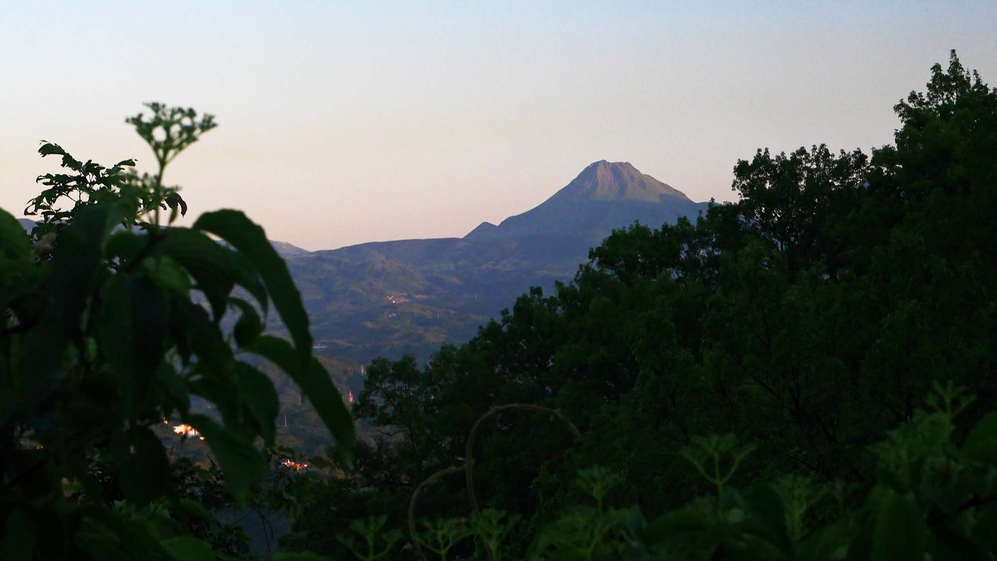 ヤイロチョウで賑わった東屋ポイントから由布岳を・・