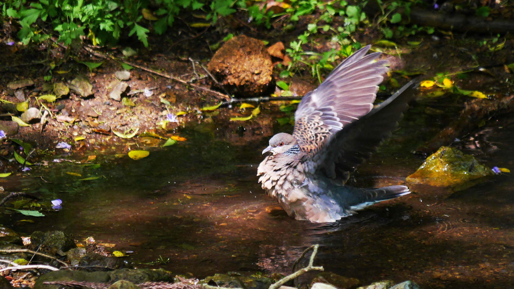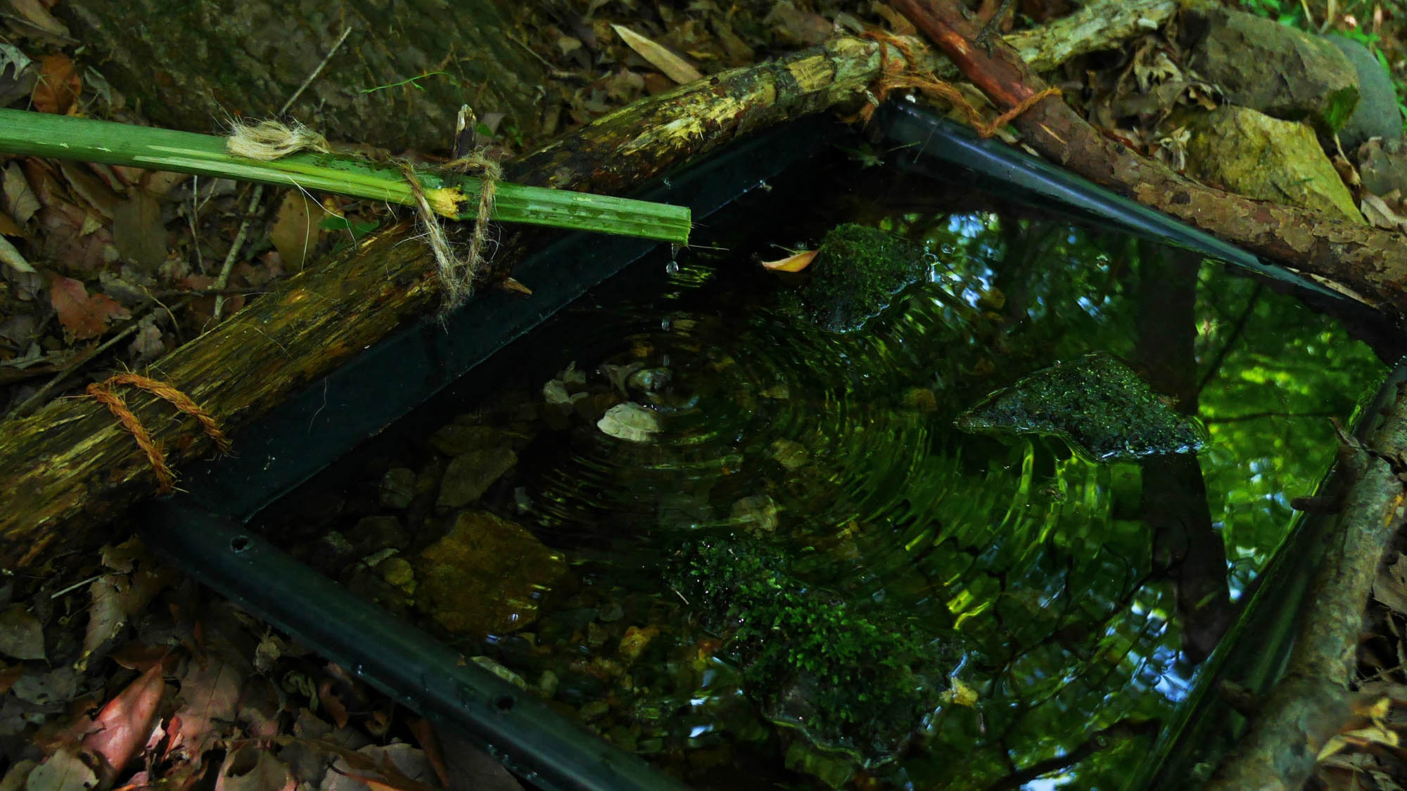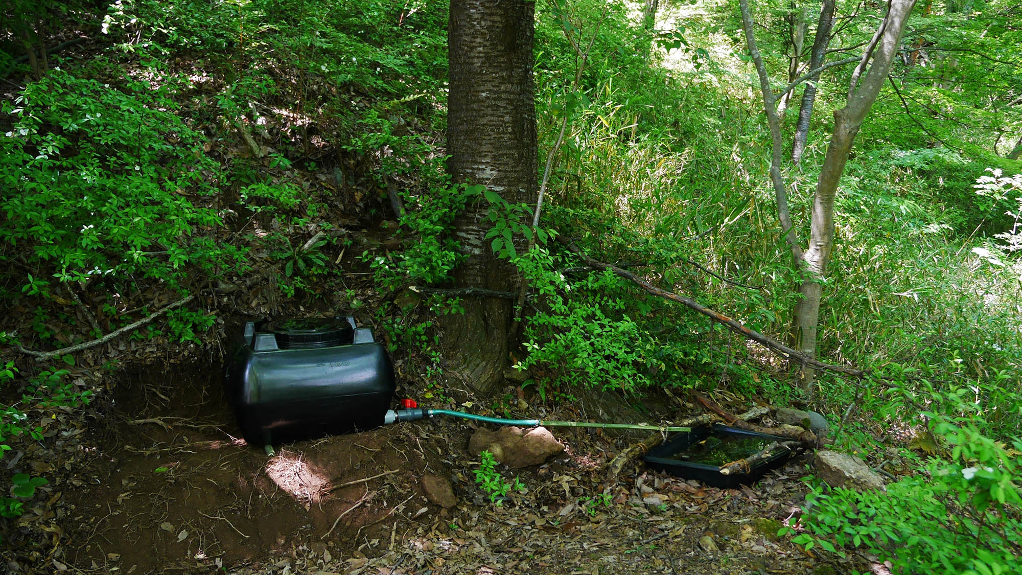 HOKKEさんの言うとおり、下流沿いの谷②から「ビフィービフィー」と独特な鳴き声が何度も聞き取れました。二人で設置中の水浴び場を完成させ、ハチマンさんも呼んで3人で待機していると、今度は③の場所から鳴き声です。
