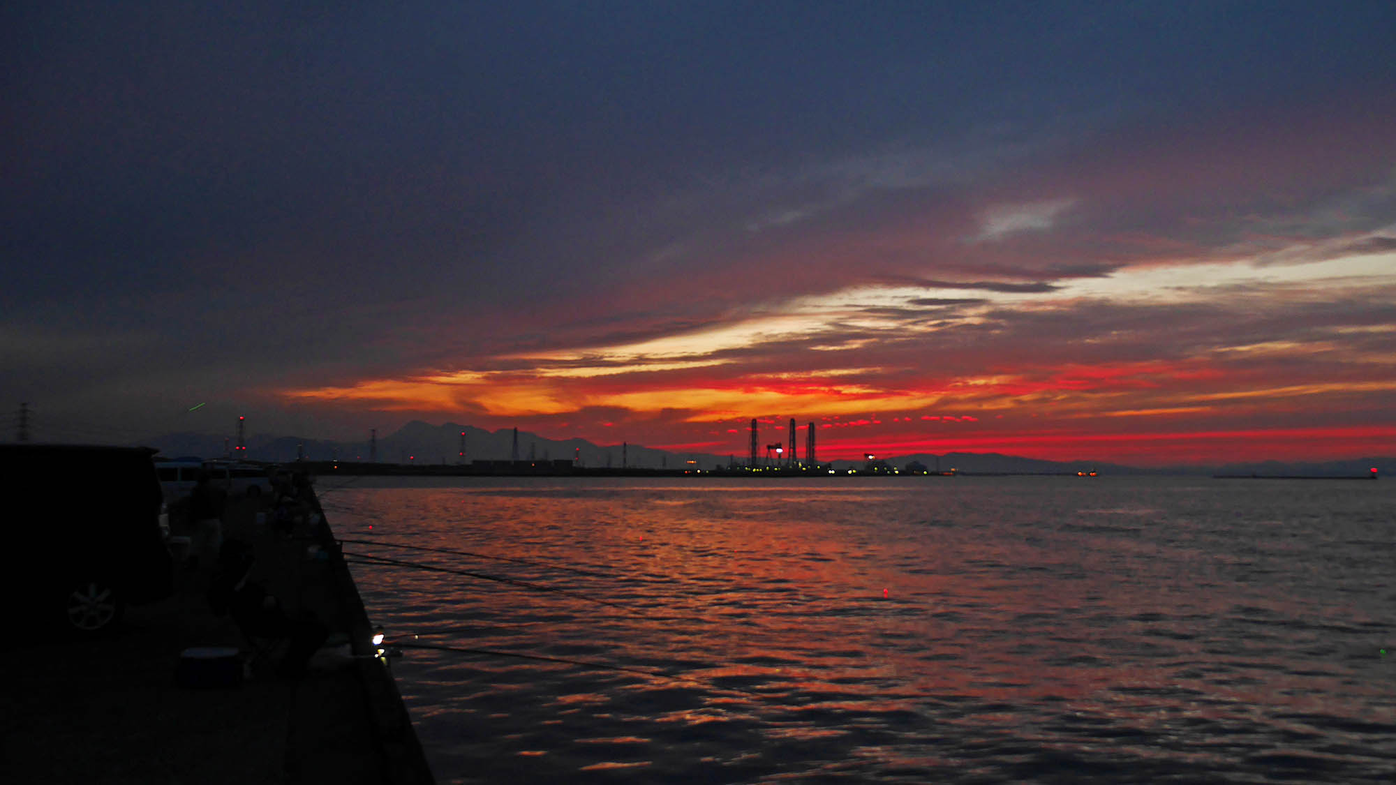 今は型の良いアジが釣れる情報が入っており、久し振りにアジの夜釣りの計画ですが、チヌやマダイの状況も確かめたかったので、早めに現地到着です。