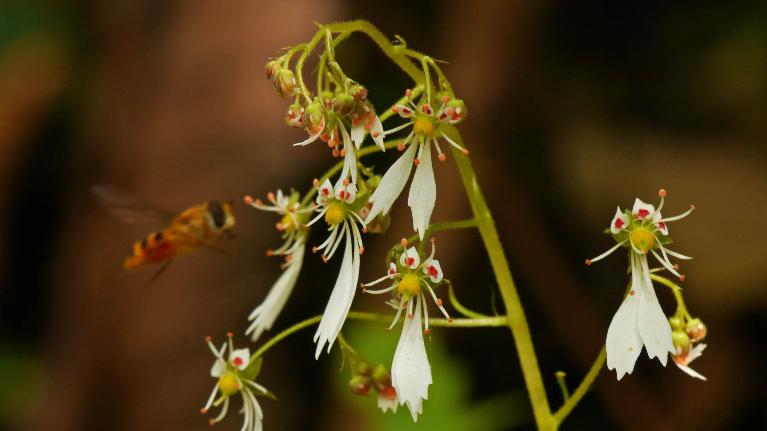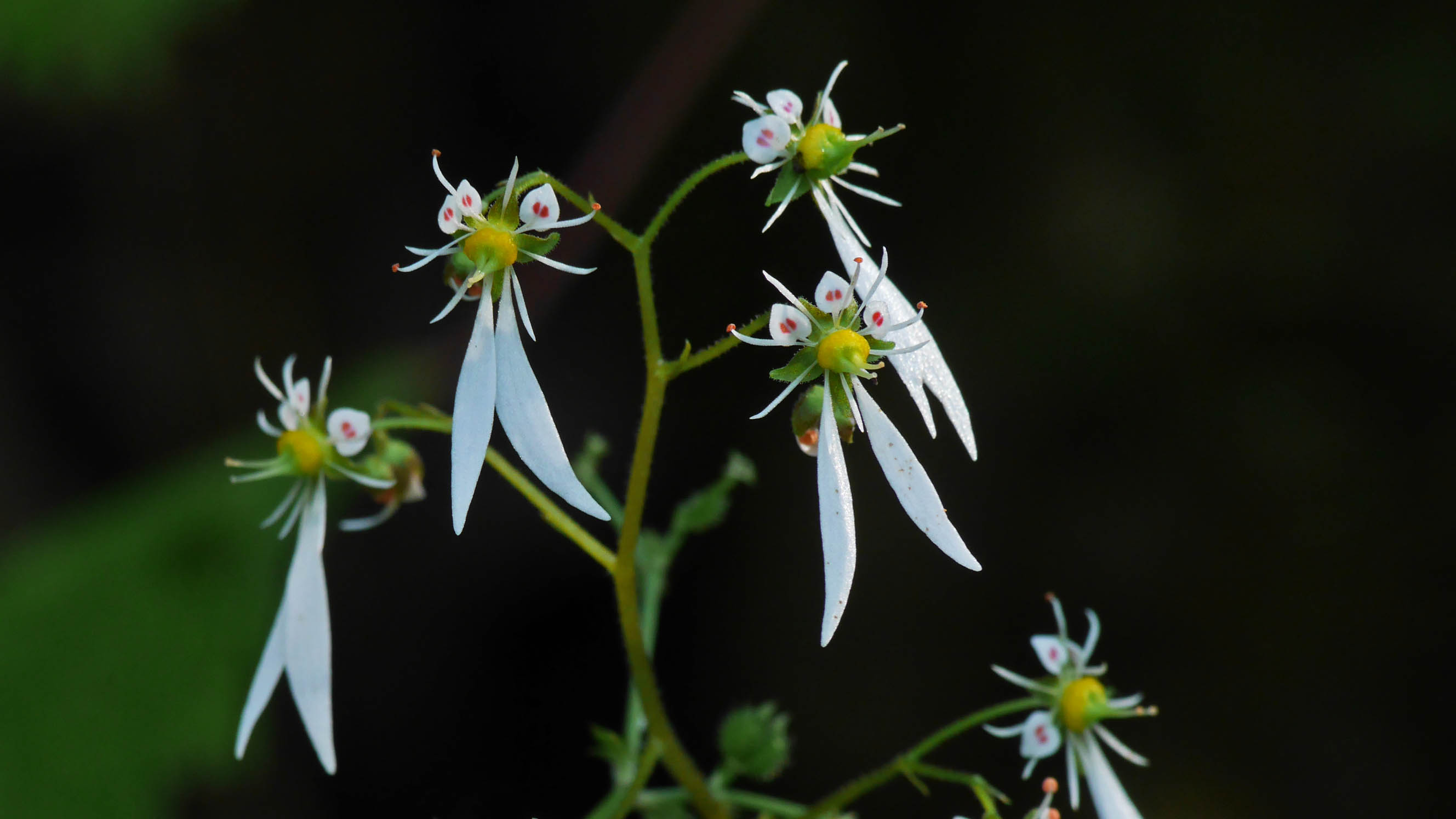 こちらが葉と茎と花の全身です。花はユキノシタに似ている感じ