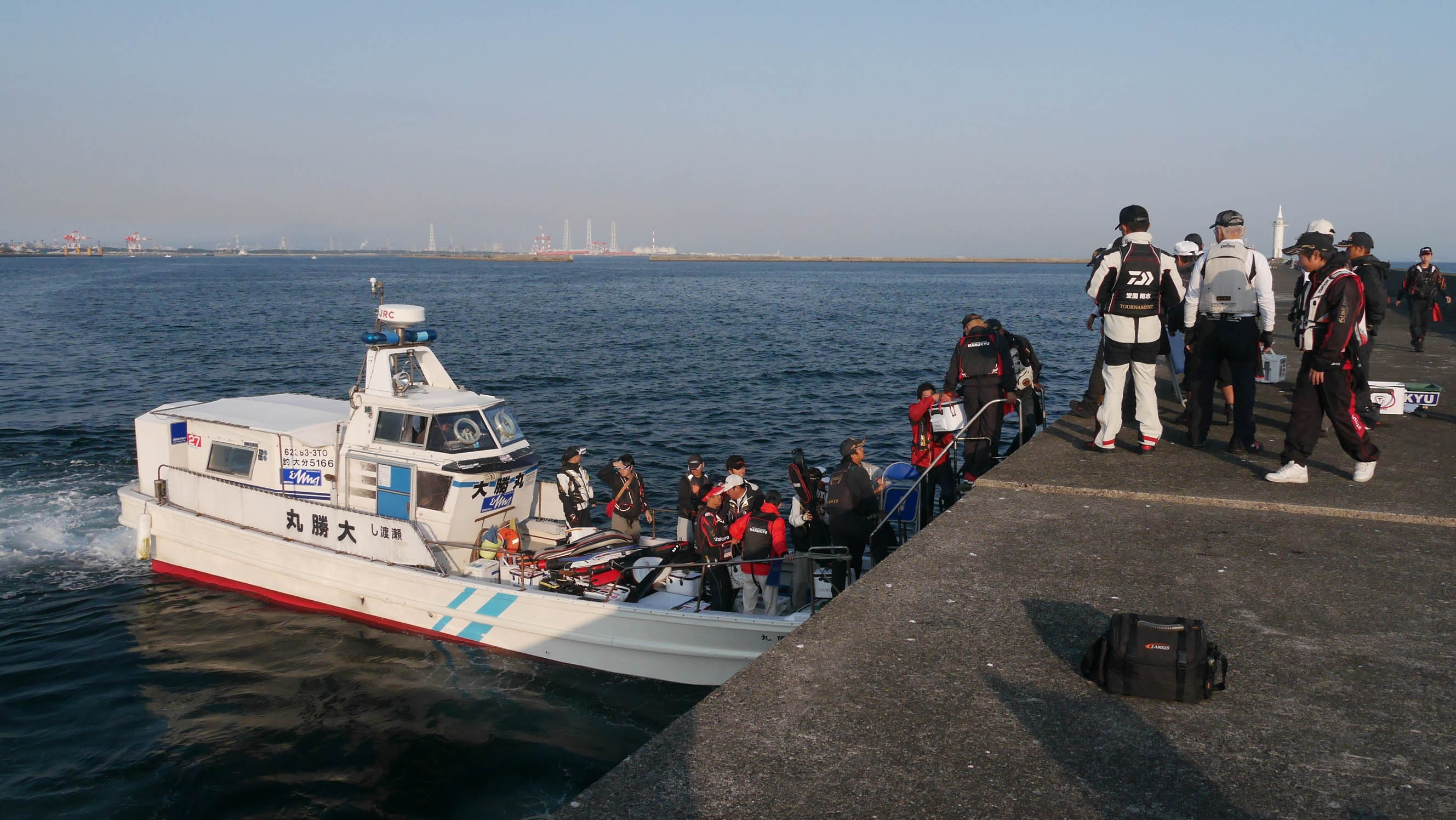 使用渡船は長年お世話になっている大勝丸。7時から複数便に分けて27名(受講者19名・スタッフ8名)が縦一文字の中央あたりへ上礁です。