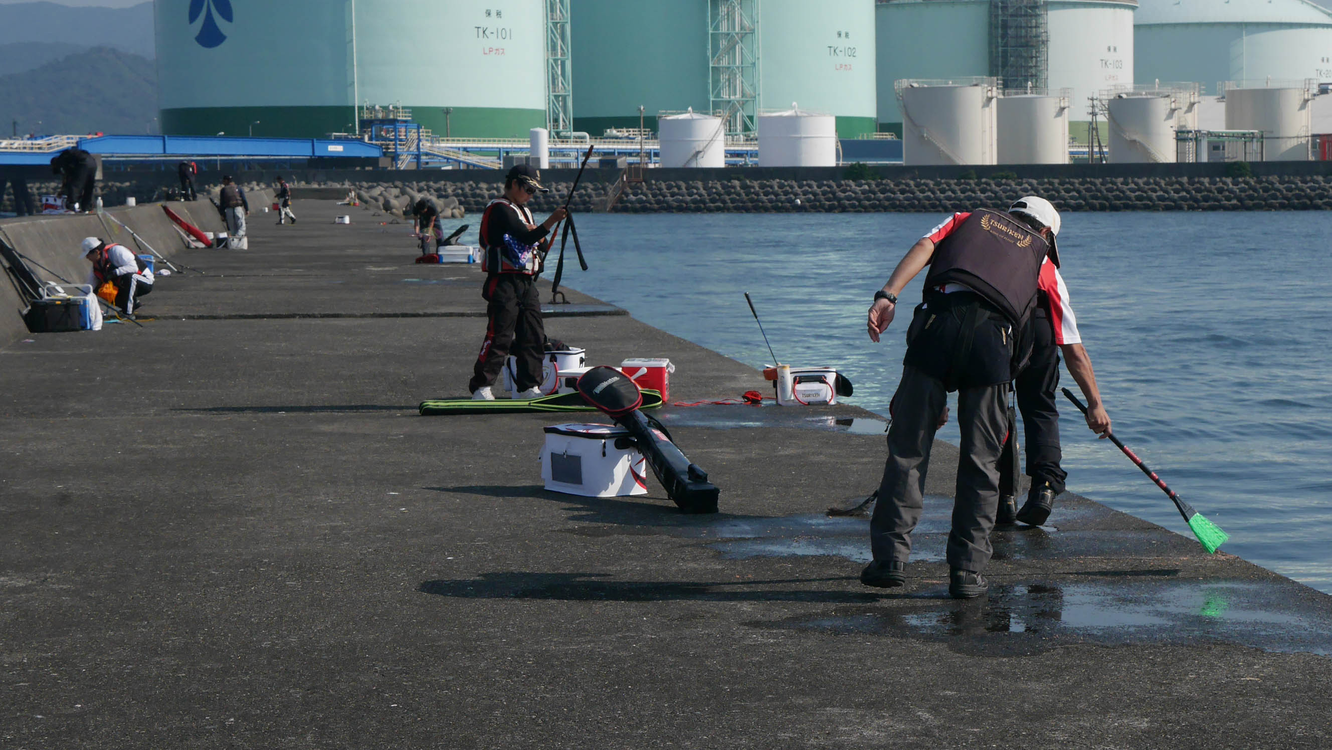 チヌ釣りの講座、木村君のレクチャー後は皆さんの釣り。