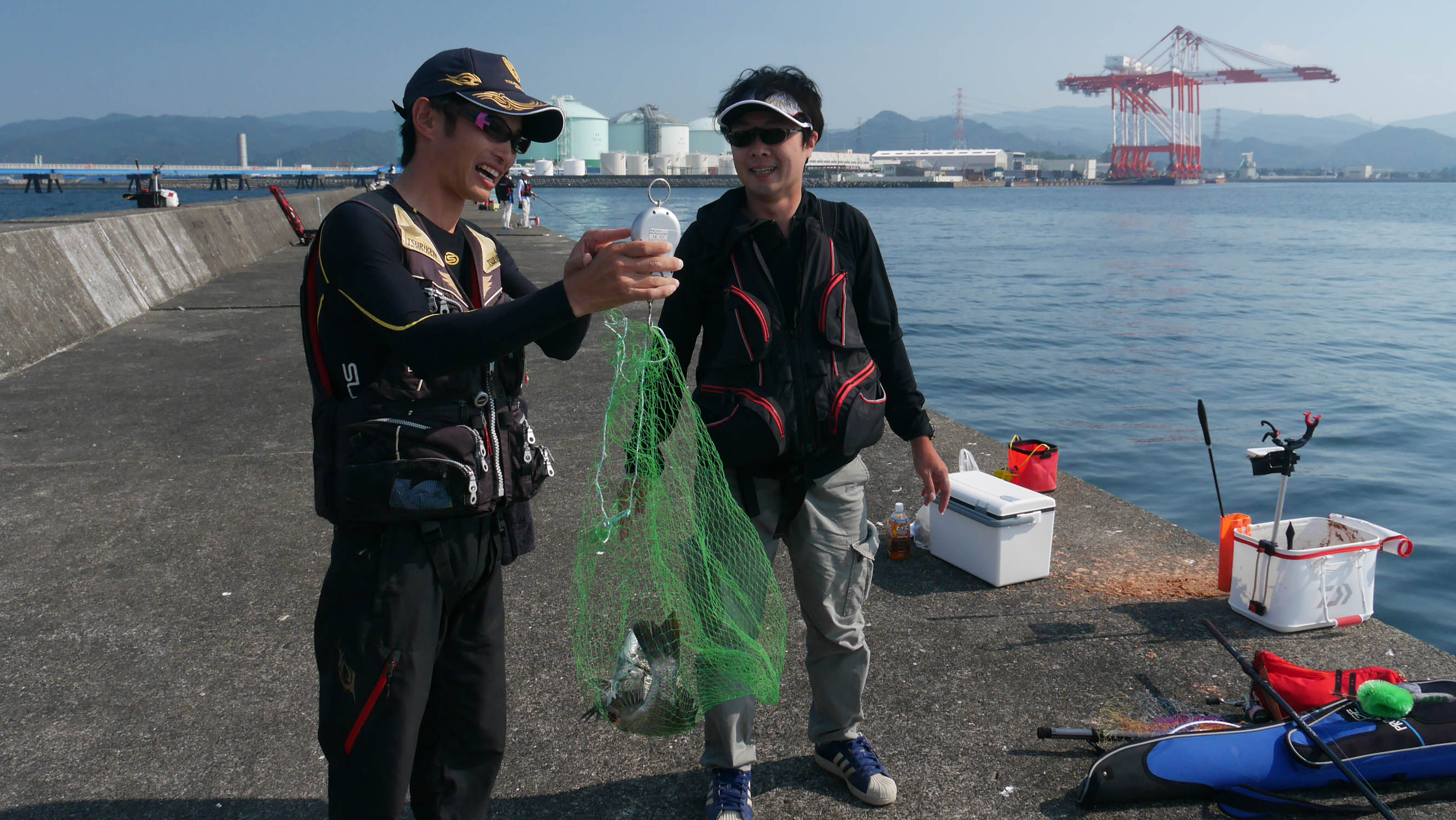 2枚のマダイは、12日に鳥見会の食材予定なので丸二水産のイケスに預けました。今回は大きなマダイが出なかったので5㎏級を狙って再チャレンジです。