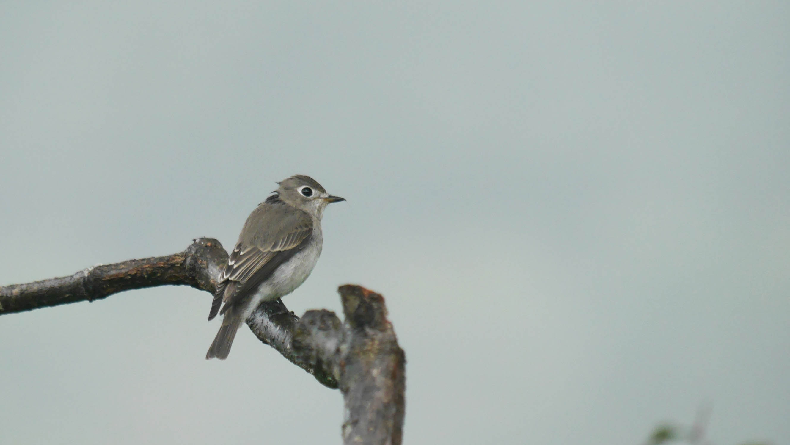 比較のエゾビタキ、胸に縦縞・翼が長いので尻尾が短く見える