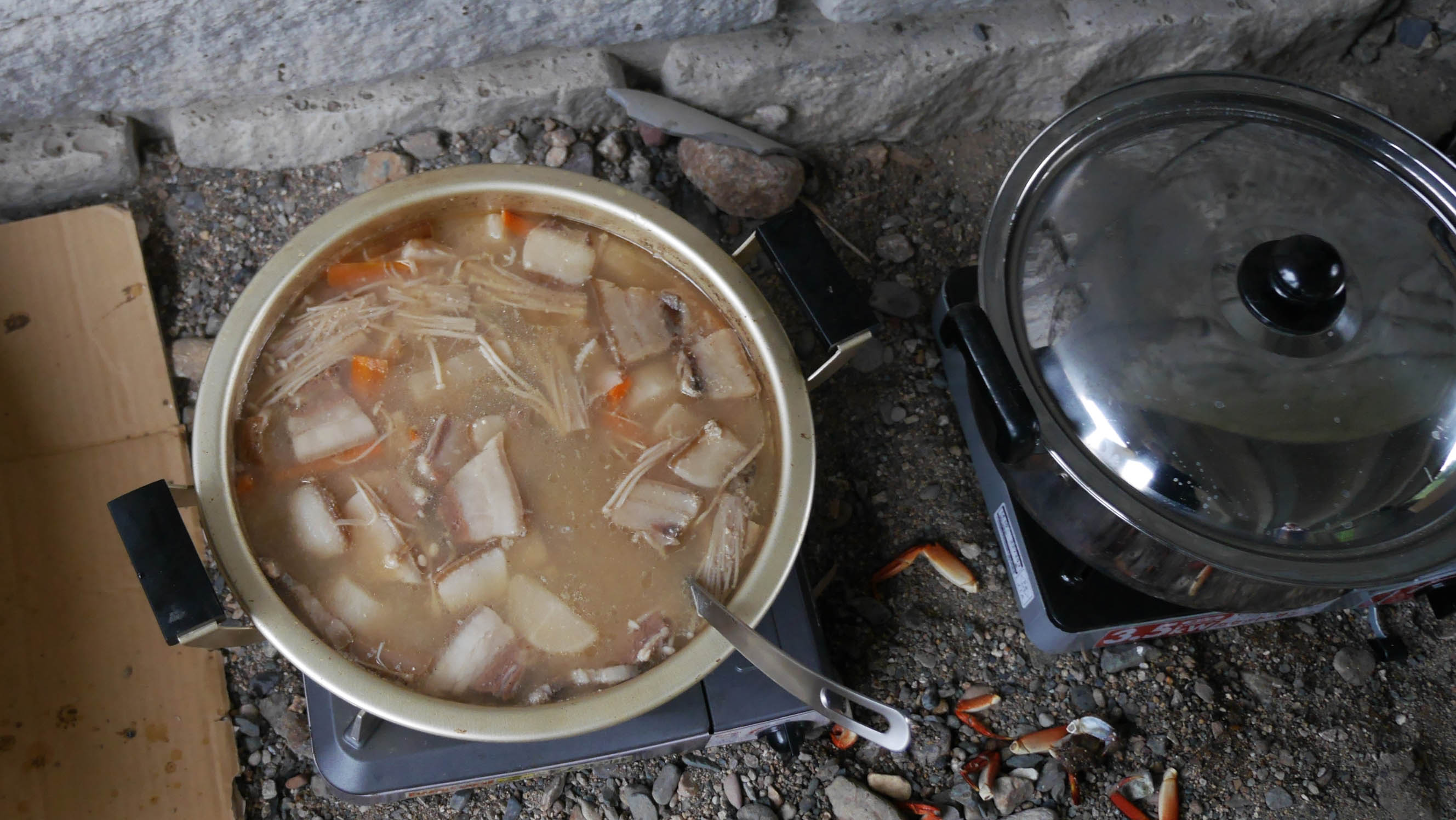 船内は少し狭かったので、あとで骨筏へ足場を移しました