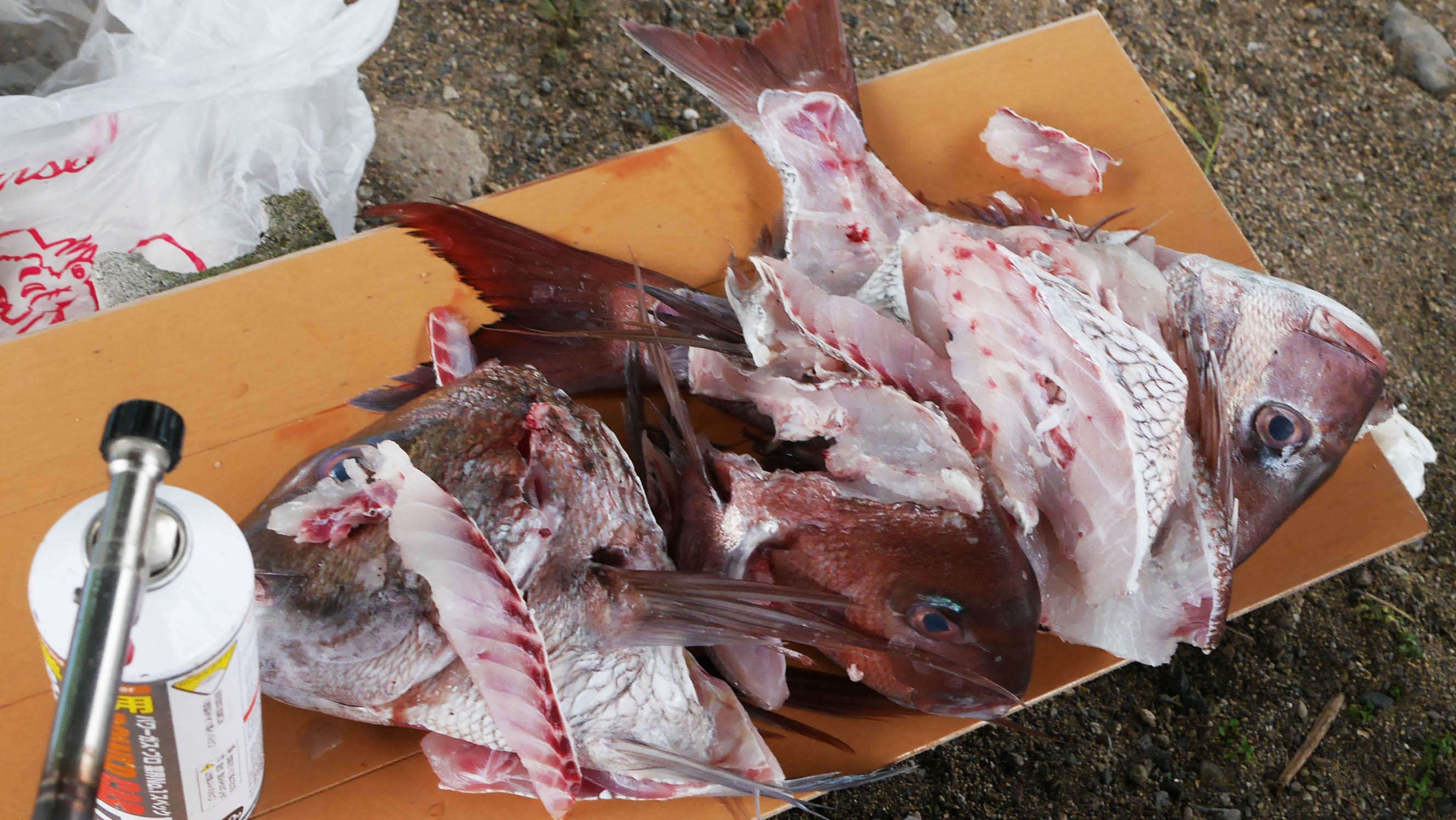 締めて持ち帰ったのは今回の3㎏級と前回の2㎏級を2枚。あとは丸二水産へのプレゼント。マダイを生かすためのイケスを貸してくれたお礼です。